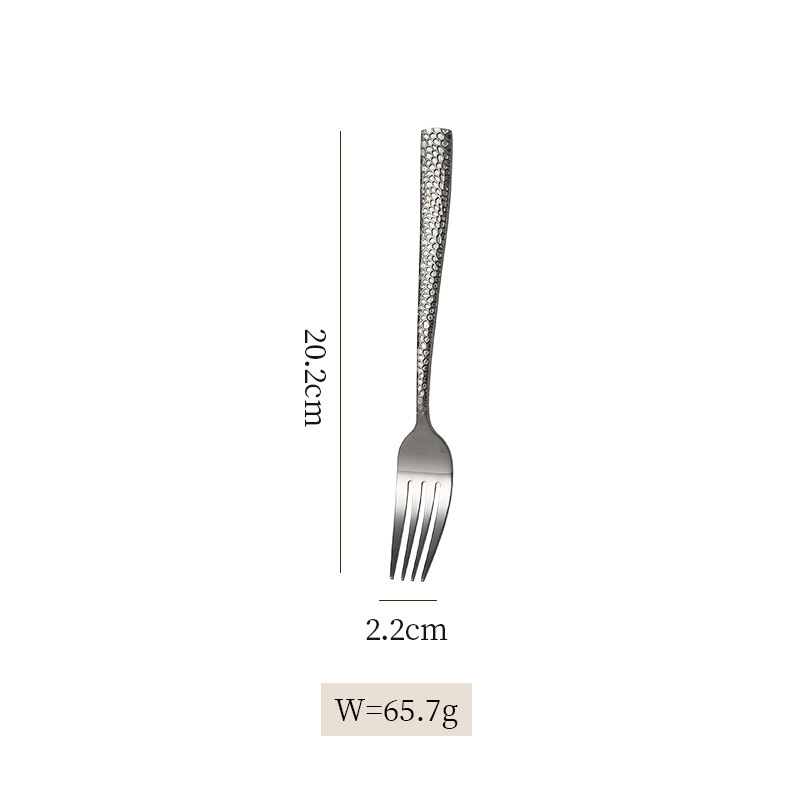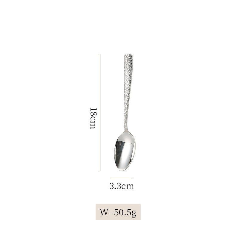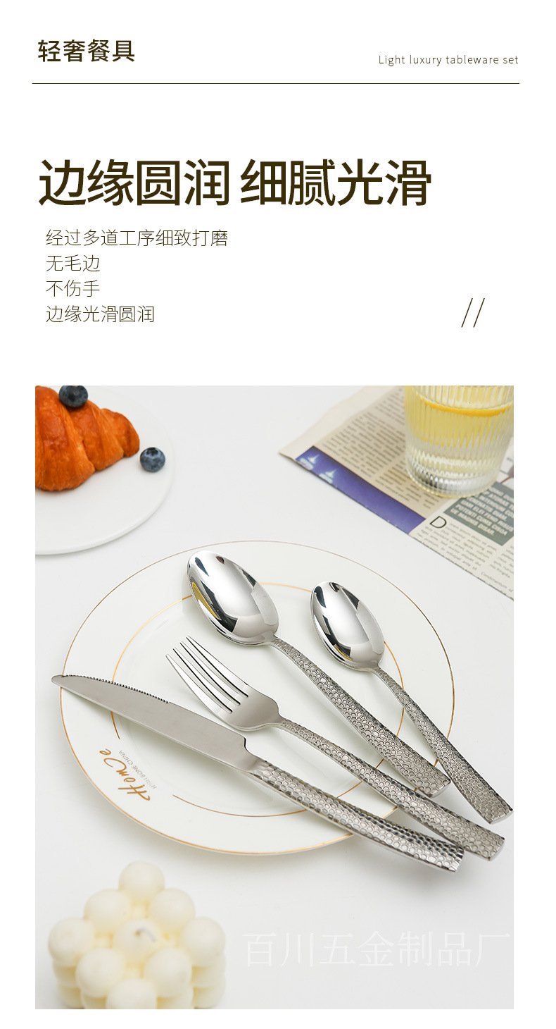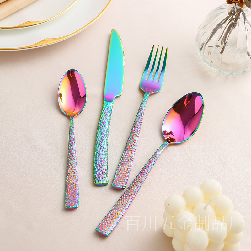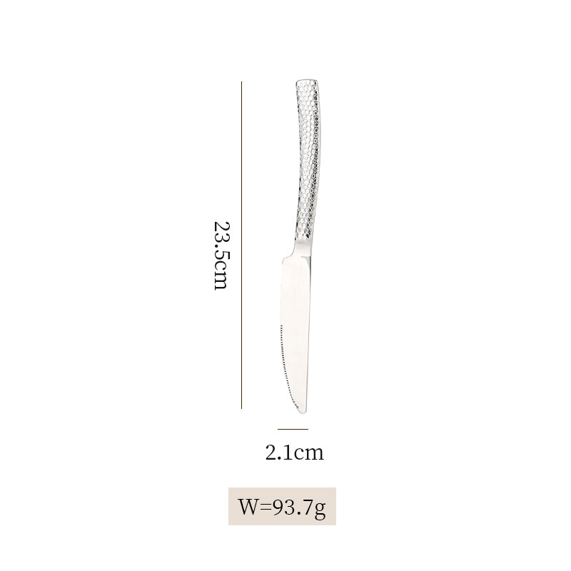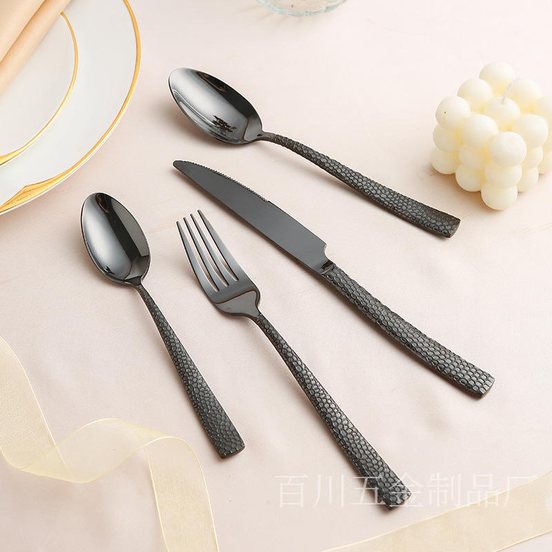 Cross-Border Creative 430 Stainless Steel Square Handle Diamond Hammered Table Knife, Fork and Spoon Dessert Spoon Hotel Western Food Tableware Set