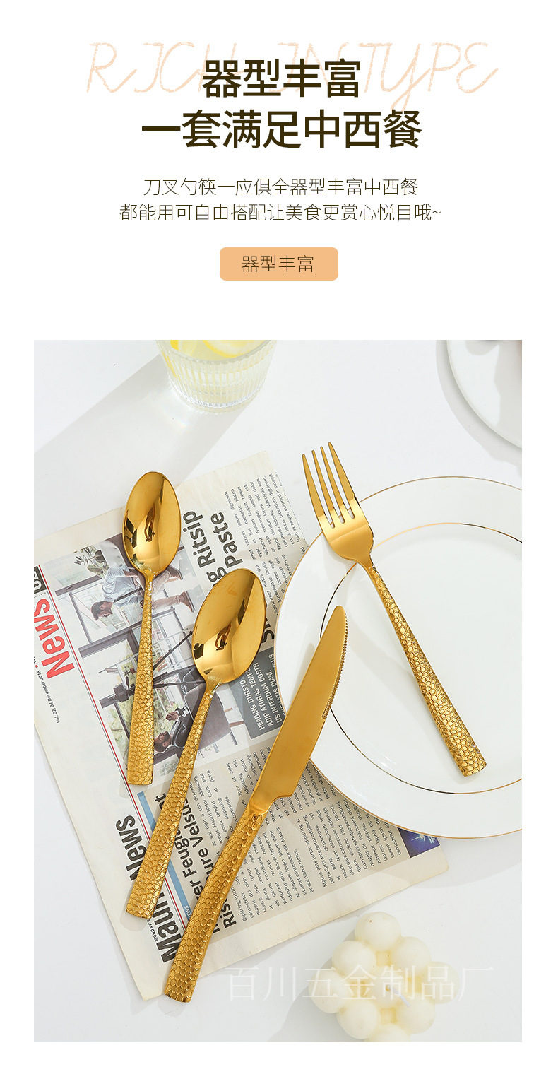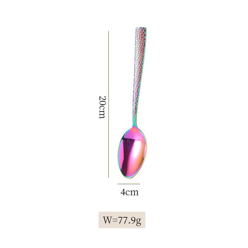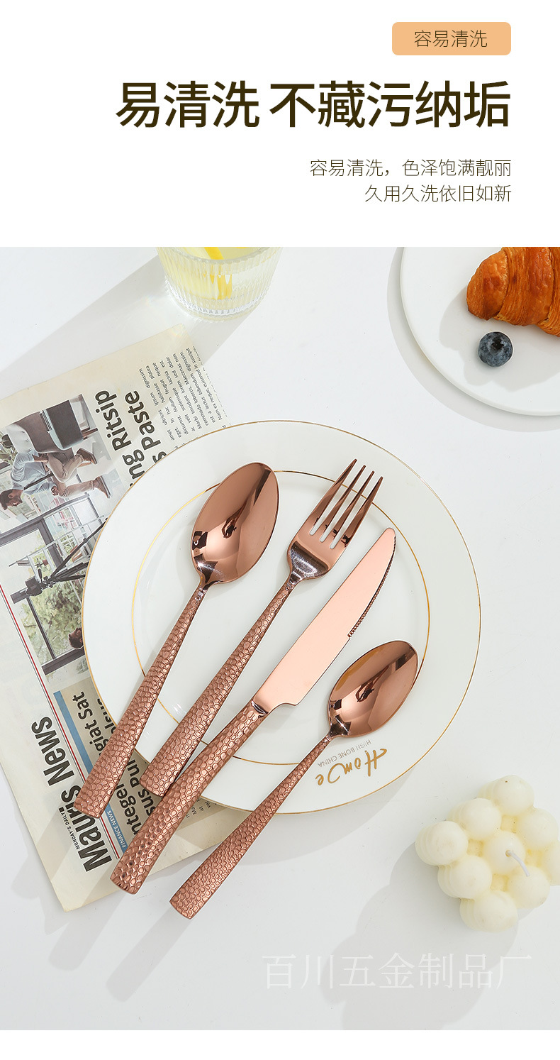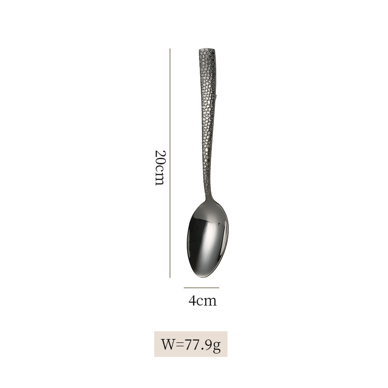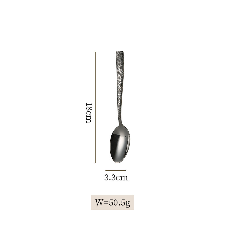 Cross-Border Creative 430 Stainless Steel Square Handle Diamond Hammered Table Knife, Fork and Spoon Dessert Spoon Hotel Western Food Tableware Set