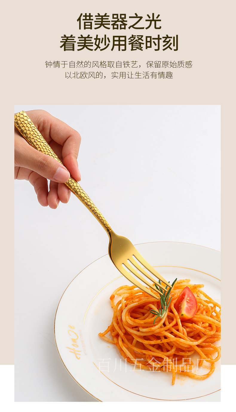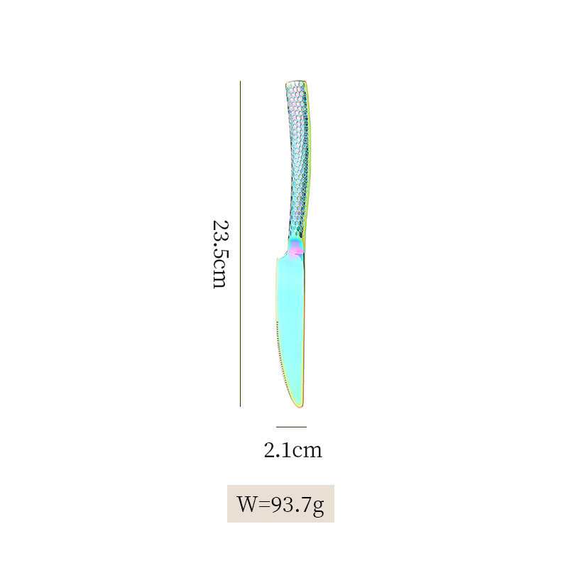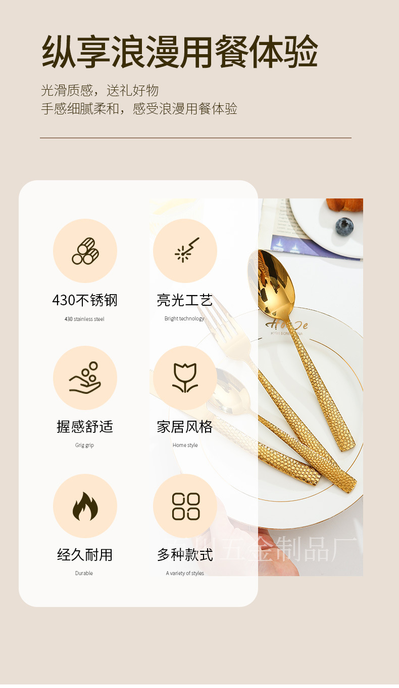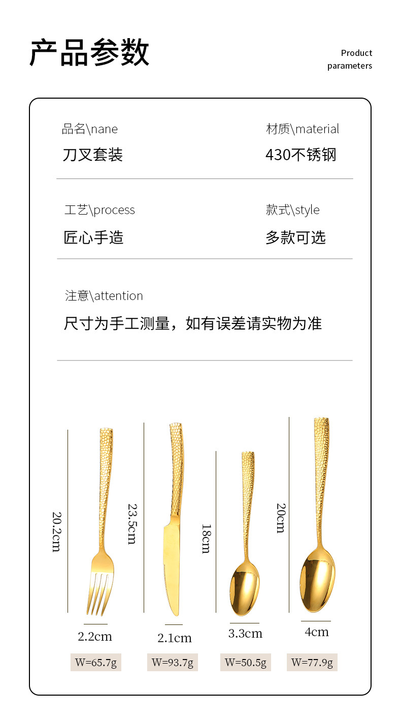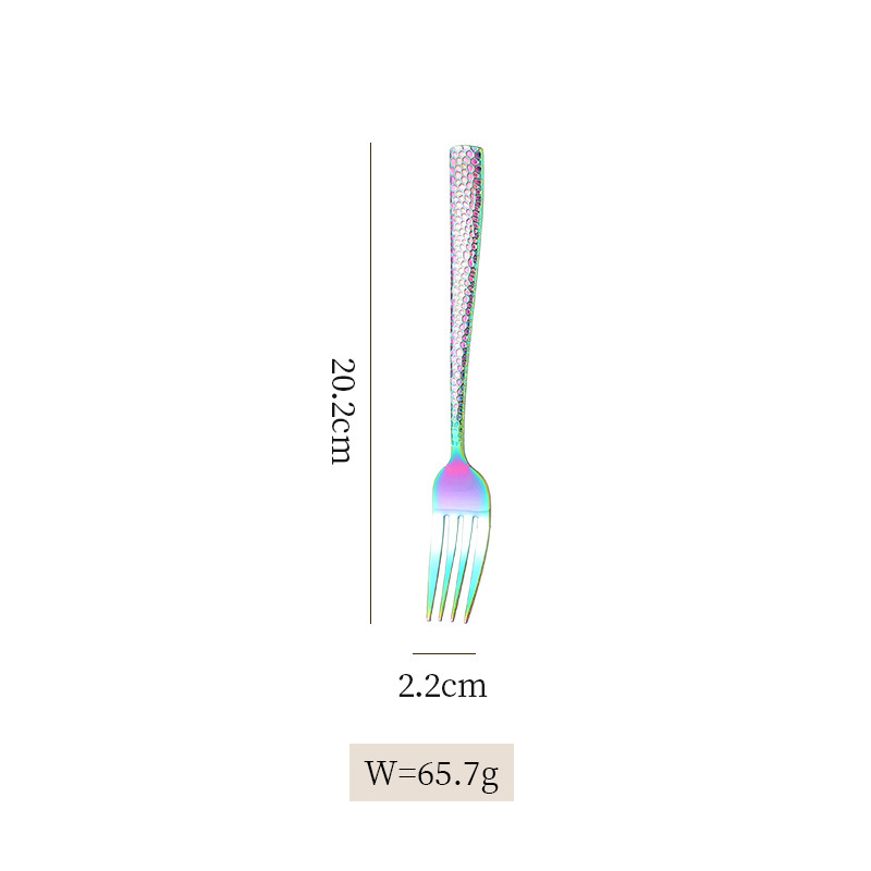 Cross-Border Creative 430 Stainless Steel Square Handle Diamond Hammered Table Knife, Fork and Spoon Dessert Spoon Hotel Western Food Tableware Set