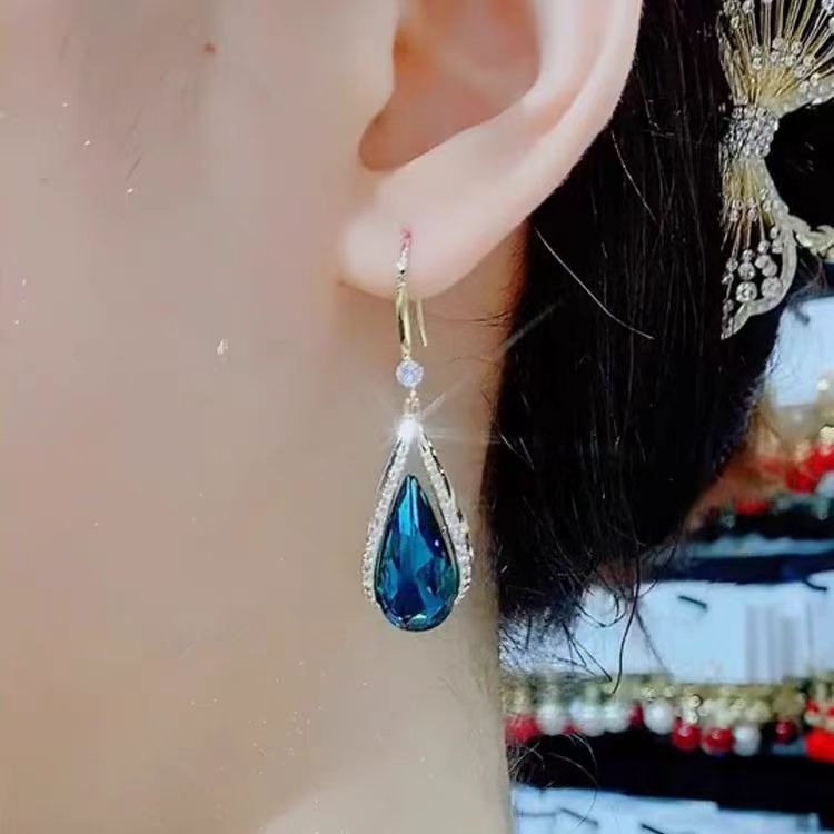 Micro-Paved Elegant Blue Water Drop Earrings New S925 Silver Needle Fashionable Age-Reducing Women's Accessible Luxury Hot Style Earrings Wholesale