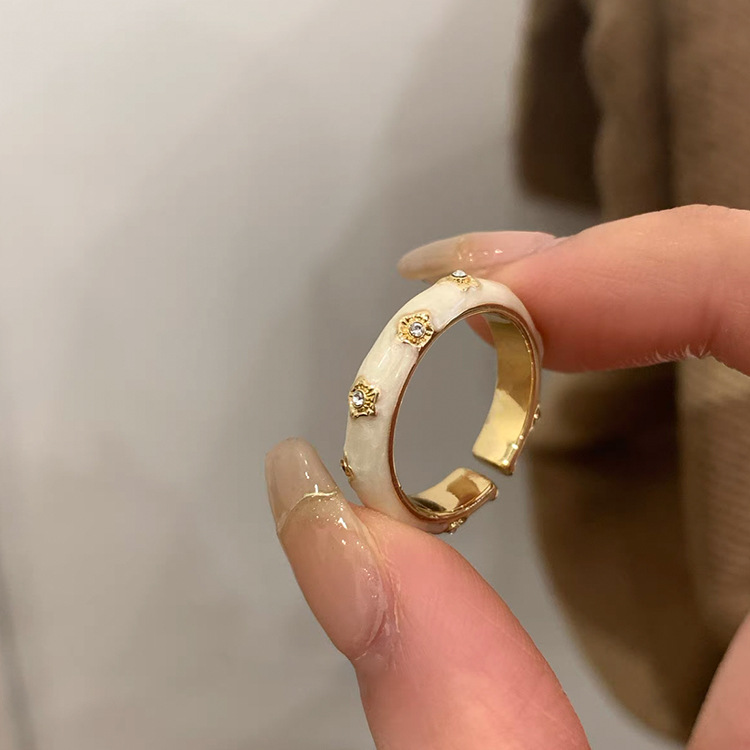 Niche design drop oil metal Pearl open ring female retro personality simple all-match temperament ring ring