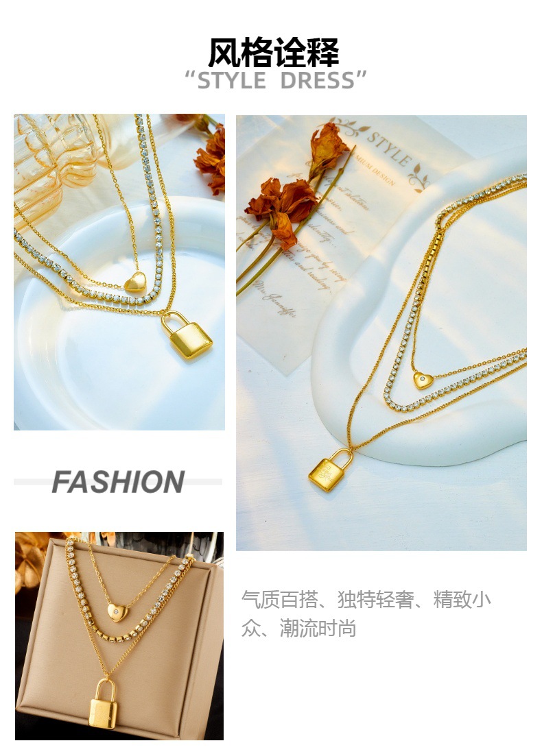 European and American Fashion Niche Punk Hip-Hop Cold Style Metal Multi-Layer Chain Lock Pendant Heart Titanium Steel Necklace