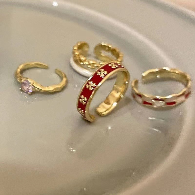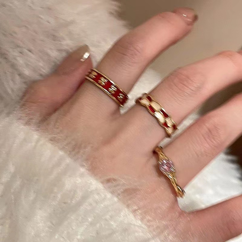 Vintage Dropping Glaze Opening Ring Women's Unique Niche Design Sense Couple's Finger Ring ins Light Luxury High-grade Joint Ring