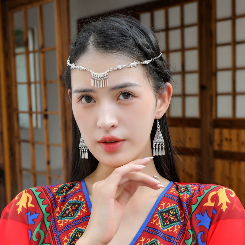 Handmade Xizang Retro Tassel Headwear Ethnic Style Travel Photographer Mori Style Eyebrow Drop Alien Style Headwear Antique Necklace for Women