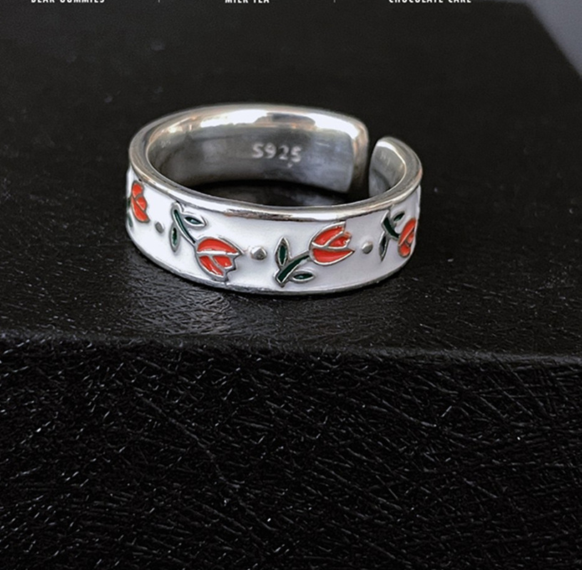 Tulip Flower Adjustable Open Ring Zhao Lusi Same Style Ring Jewelry Light Luxury Gift for Girls