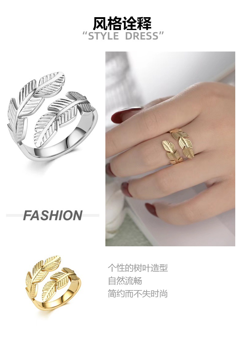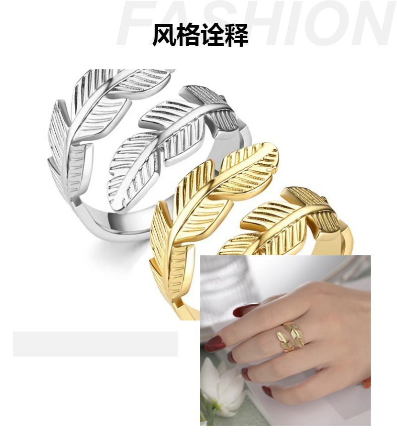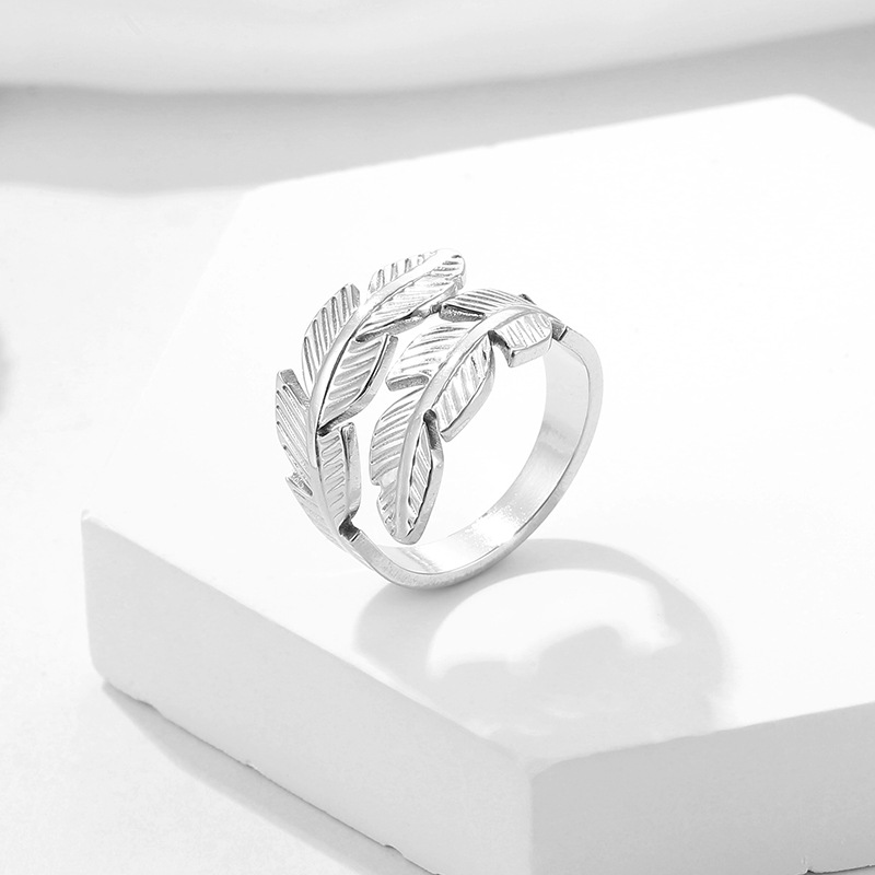 European and American Cross-Border Open Leaf Wings Feather Hydraulic Titanium Steel Ring Stainless Steel Ring Retro Hip-Hop Trend Cool