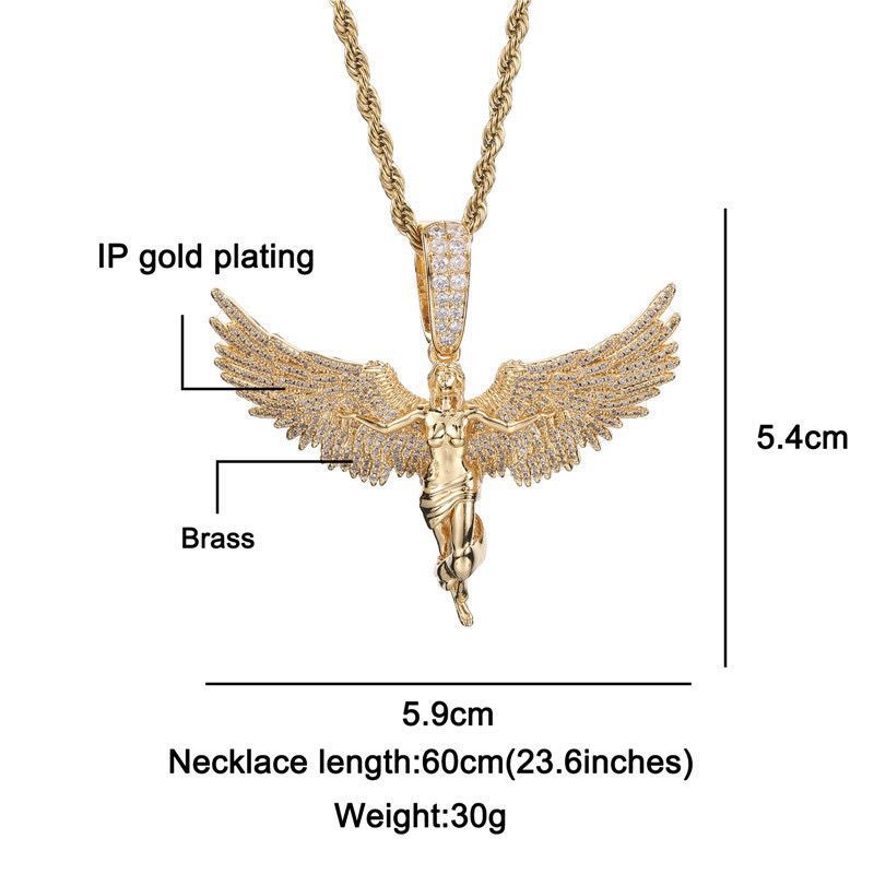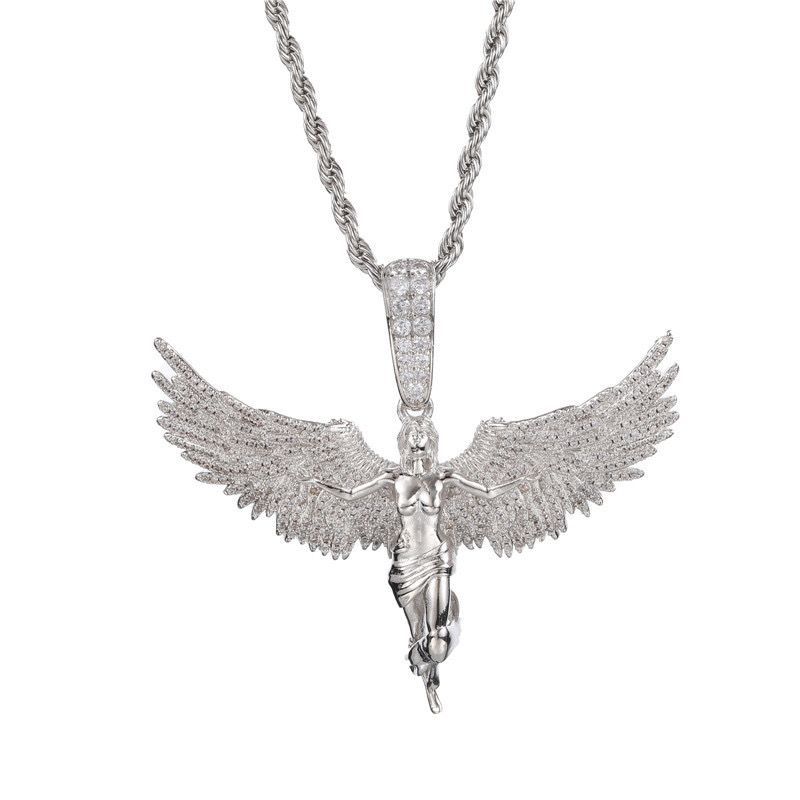 925 sterling silver European and American street Diamond-inlaid Archangel goddess wings pendant Rap Hip Hop High Street fashion Men's necklace