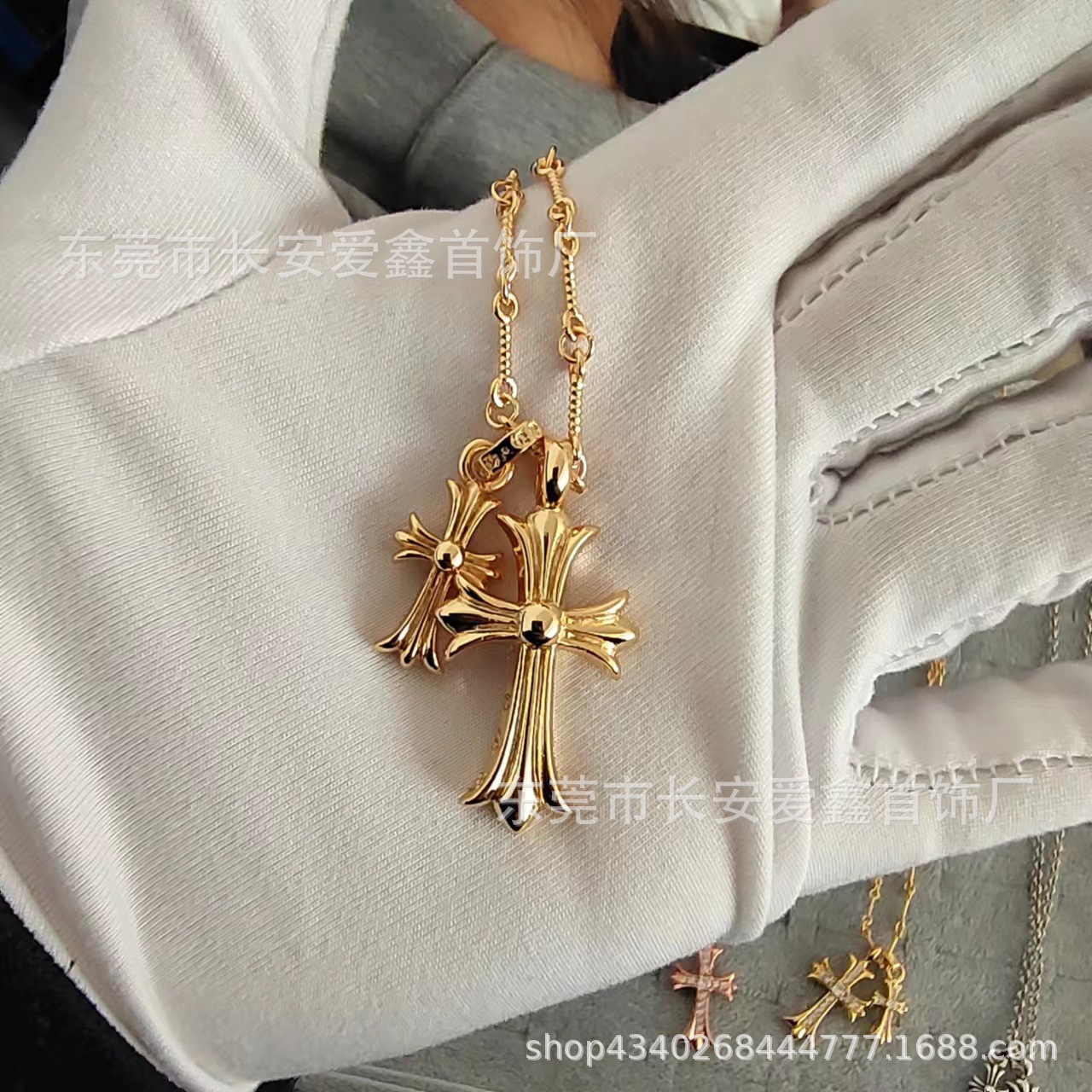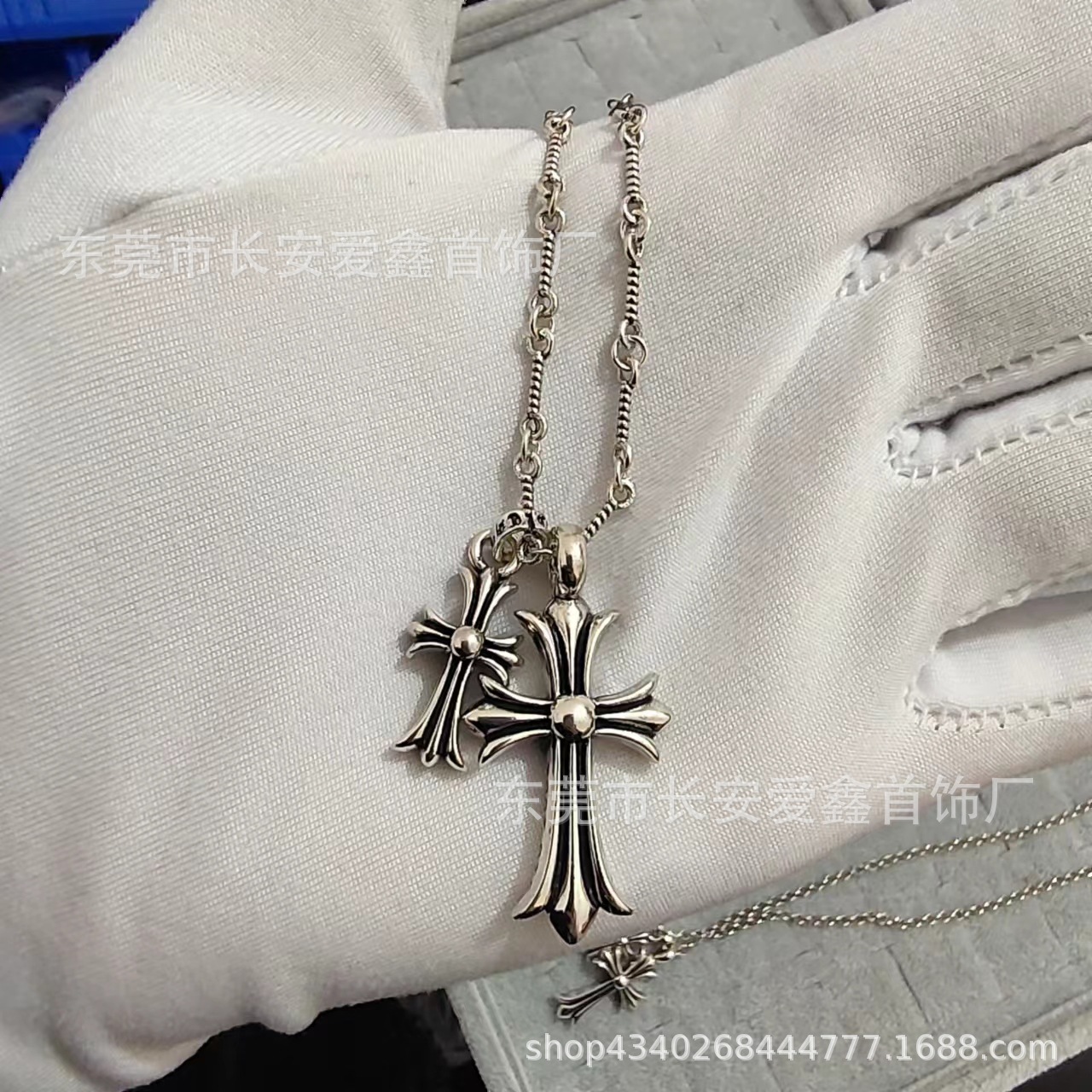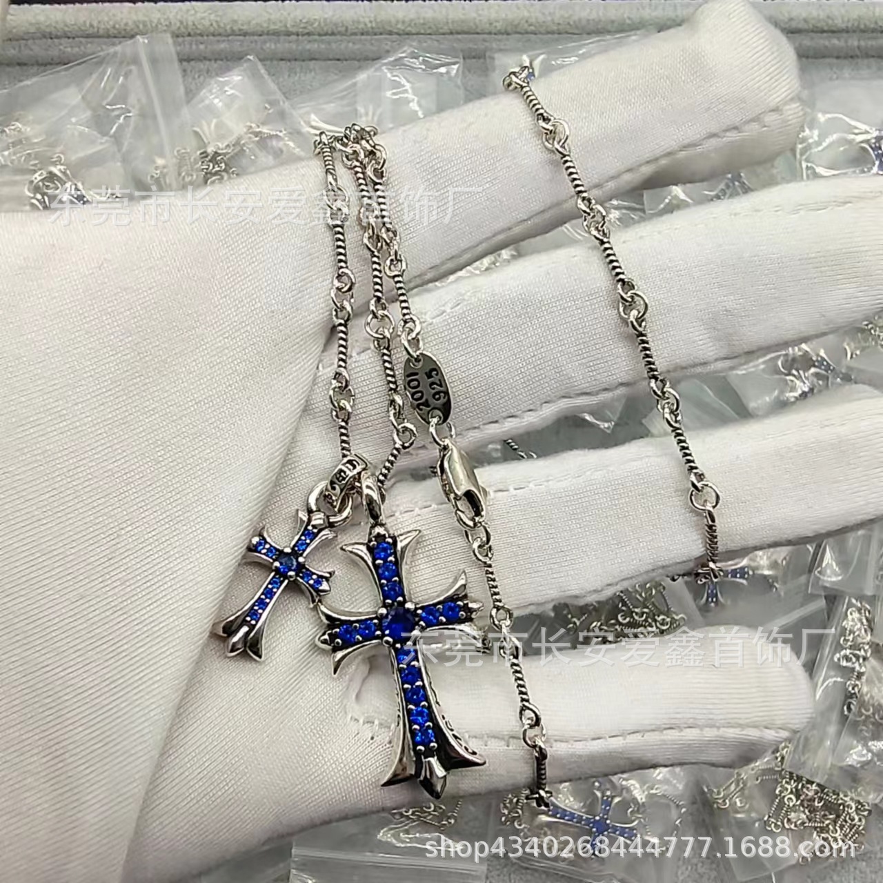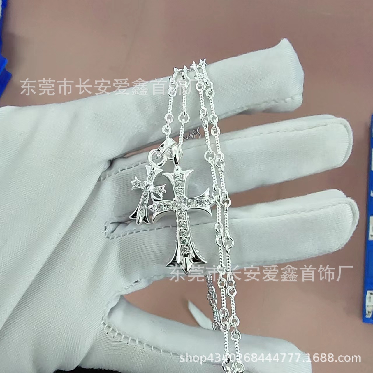 Crouchun's New Full Diamond Double Cross Necklace Retro Couple Sweater Chain Sydney Same Style Jewelry Versatile Sexy