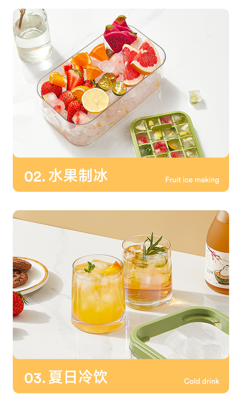 Miaoka One-Button Press Ice Mold Homemade Frozen Ice Cubes Internet Celebrity Square Grid Ice Bag with Cover Ice Box Set