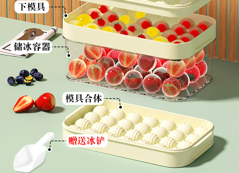 Ice Tray Homemade Ice Ball Frozen Ice Cube Mold Refrigerator with Lid Spherical Creative Ice Tray Box Ice Making Box 28 Balls in Stock