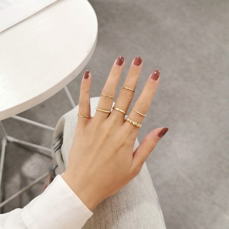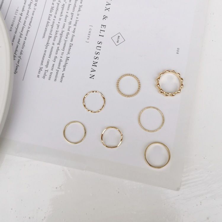 Korean version of student suit ring Korean ins simple Net red female sex cold wind 8 piece set plain ring stacked ring
