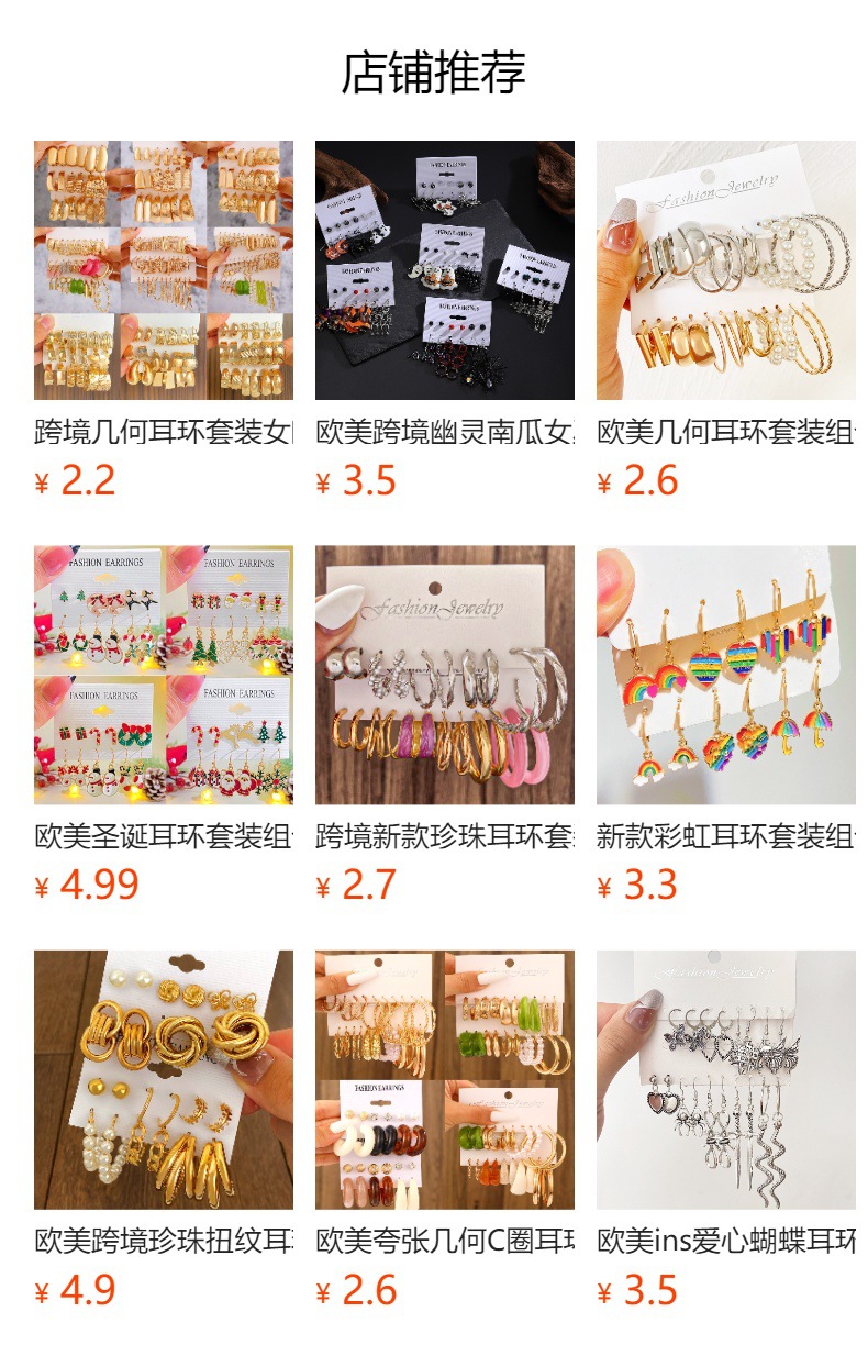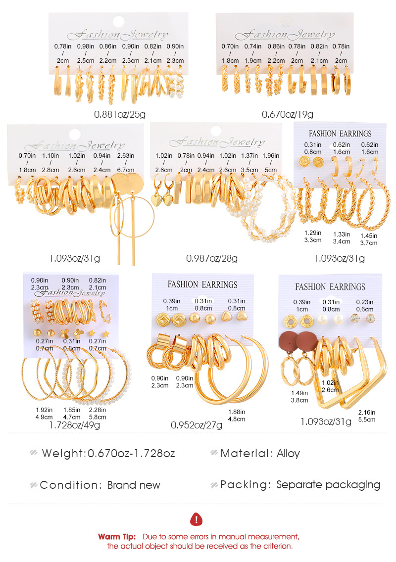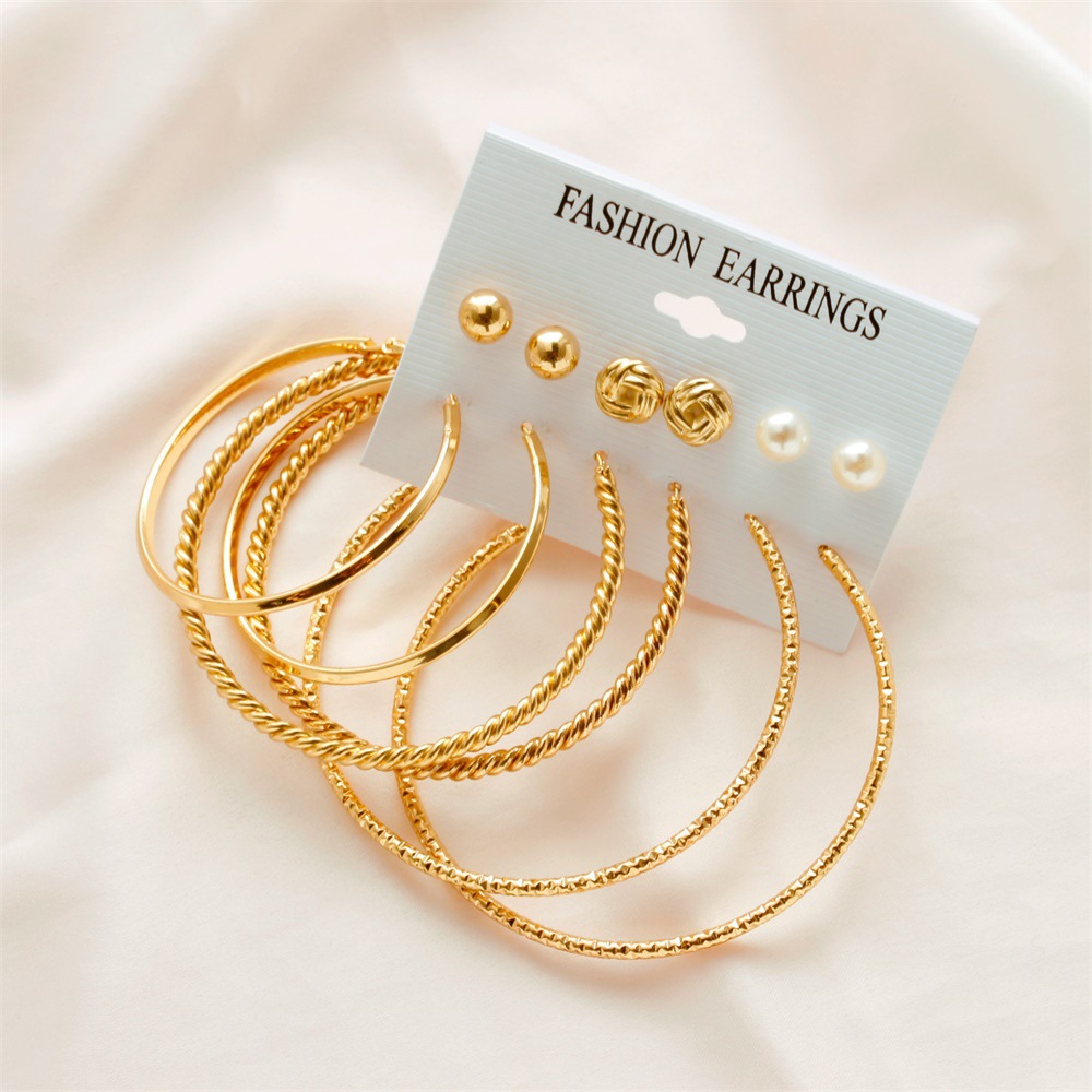 Cross-border Earrings suit Combination Ins Fashion Personalized Big Ear Ring European and American Retro Exaggerated Geometric Earrings for Women