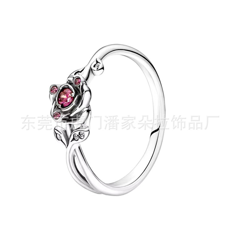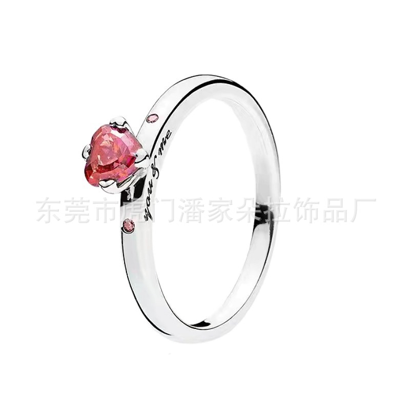Panjia White Copper S925 Silver Plated Pink Love Ring diy Accessories Light Luxury Fashion