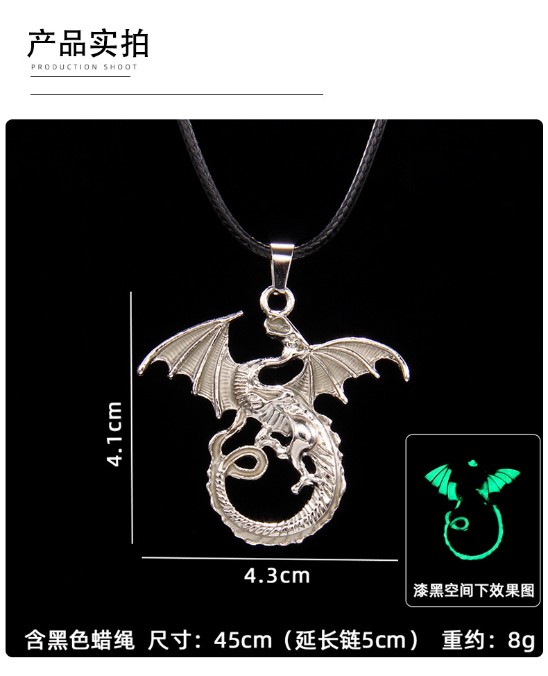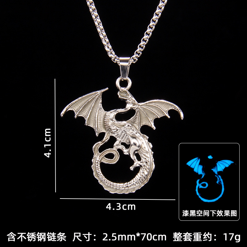 Game peripheral luminous flame Dragon cool necklace domineering children student Luminous Dragon fashion cross-border clavicle chain