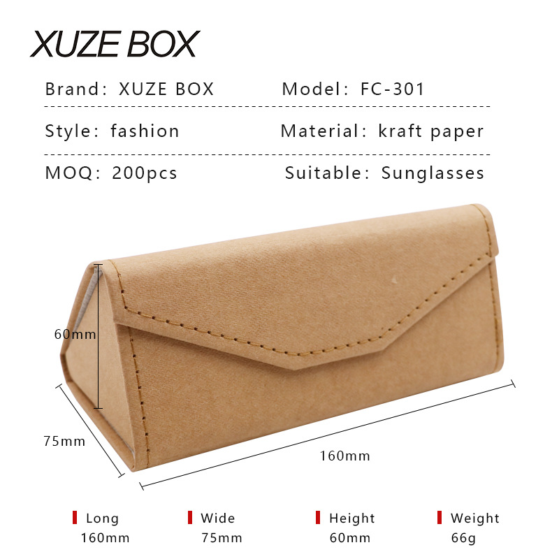 Cross-border Special for Real Sawdust Triangle Folding Glasses Box Handmade Glasses Box Foldable Sunglasses Box Kraft Paper Box