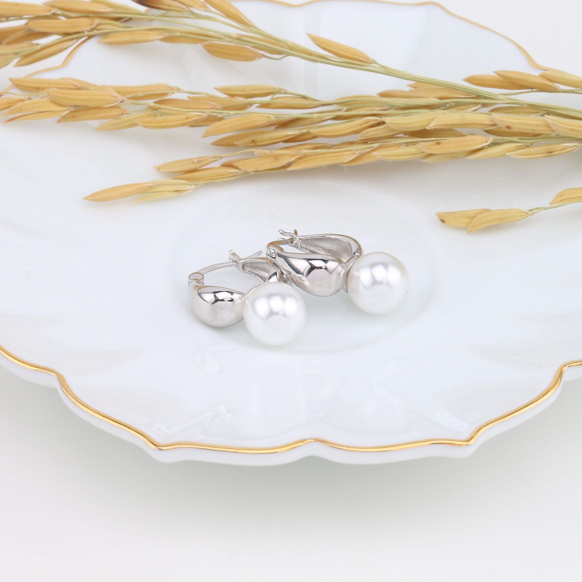 Cross-border Hot New S925 Sterling Silver French European and American Style Fashion Pearl Earrings Elegant Sweet Fresh Ear Buckle