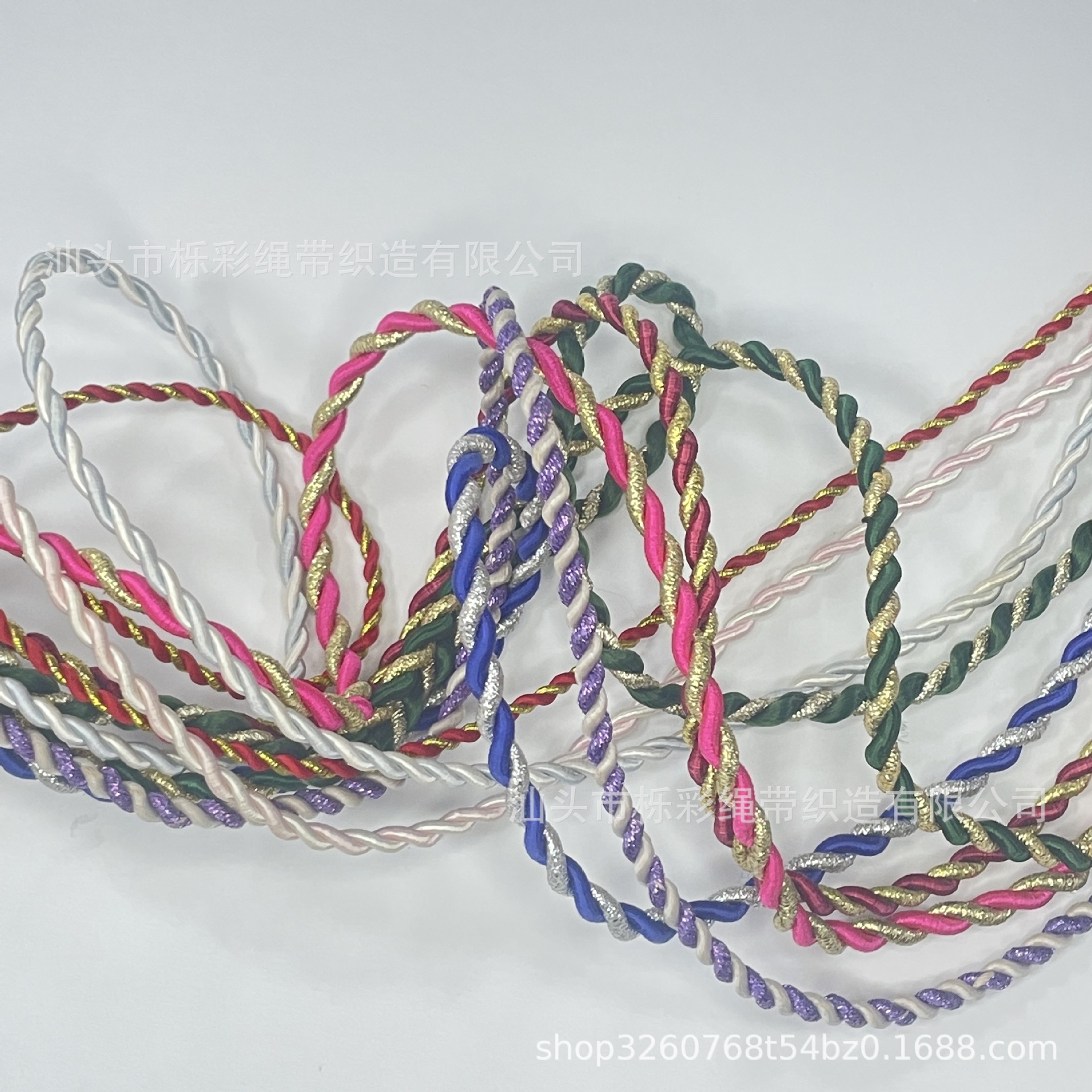 3-5mm Gold and Silver Silk Inter Color Cotton Corner Kettle Corner Handheld Rope Polyester 2 Strands Braided Rope Christmas Gift Box Binding Rope