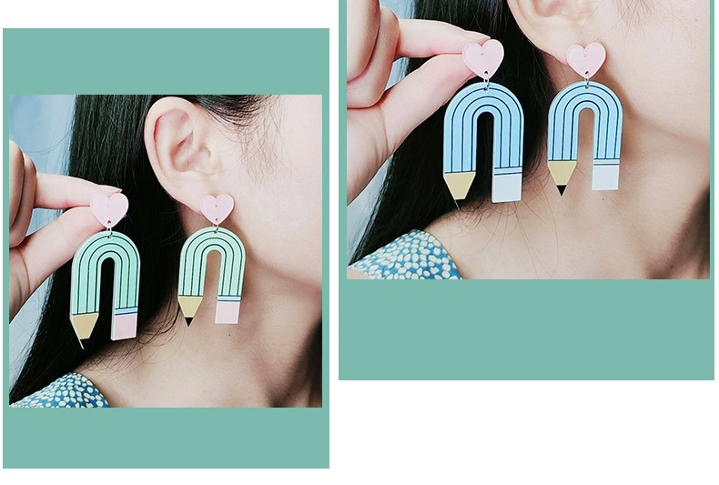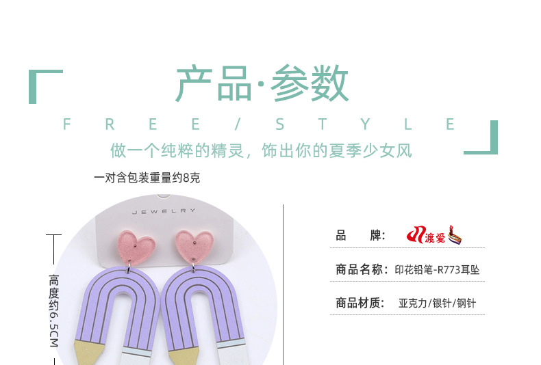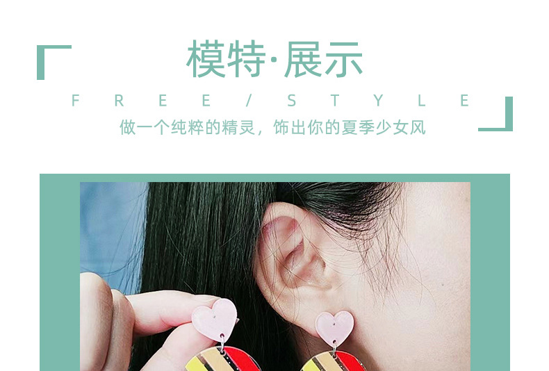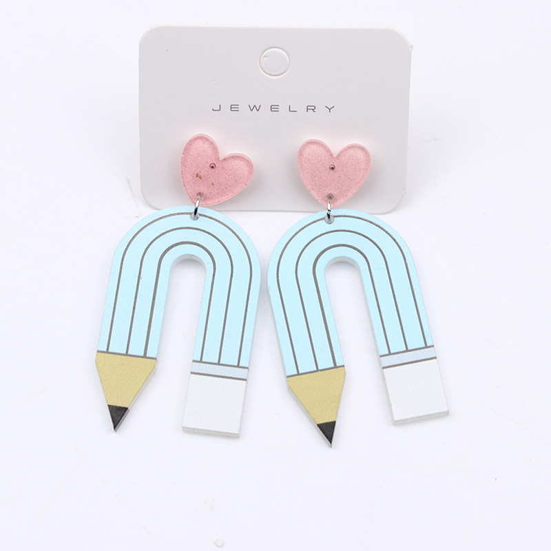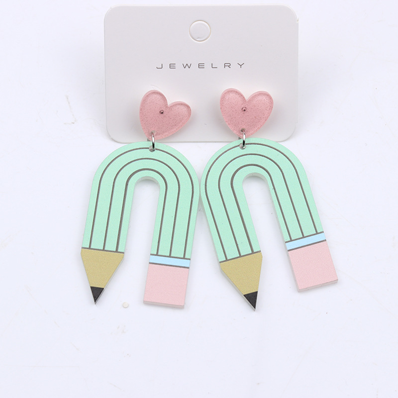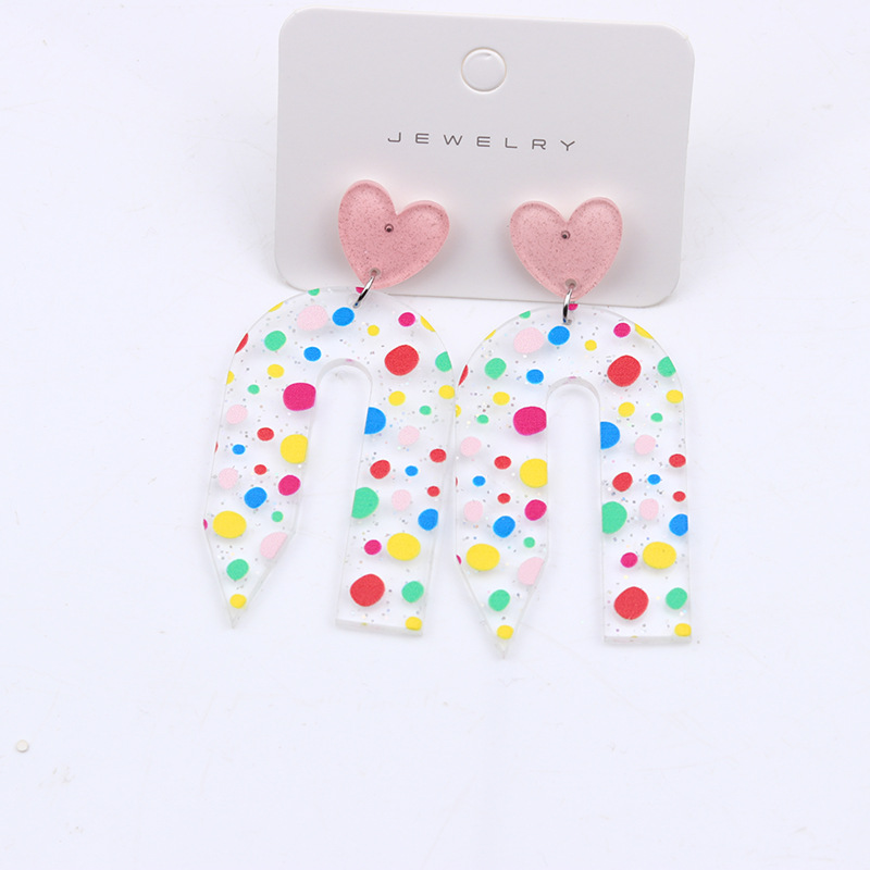 New contrast color printed pencil stud earrings acrylic earrings fashion personality striped love eardrops earrings for women