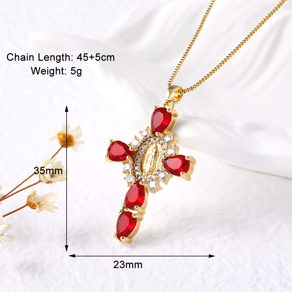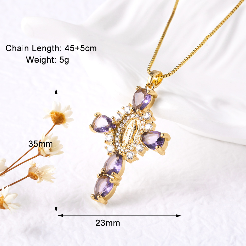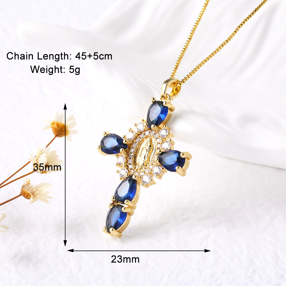 European and American Cross-border Hot Sale Micro-inlaid Zircon Pendant Creative Personality Madonna Cross Necklace Women's Clavicle Chain nks01