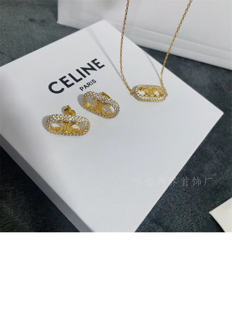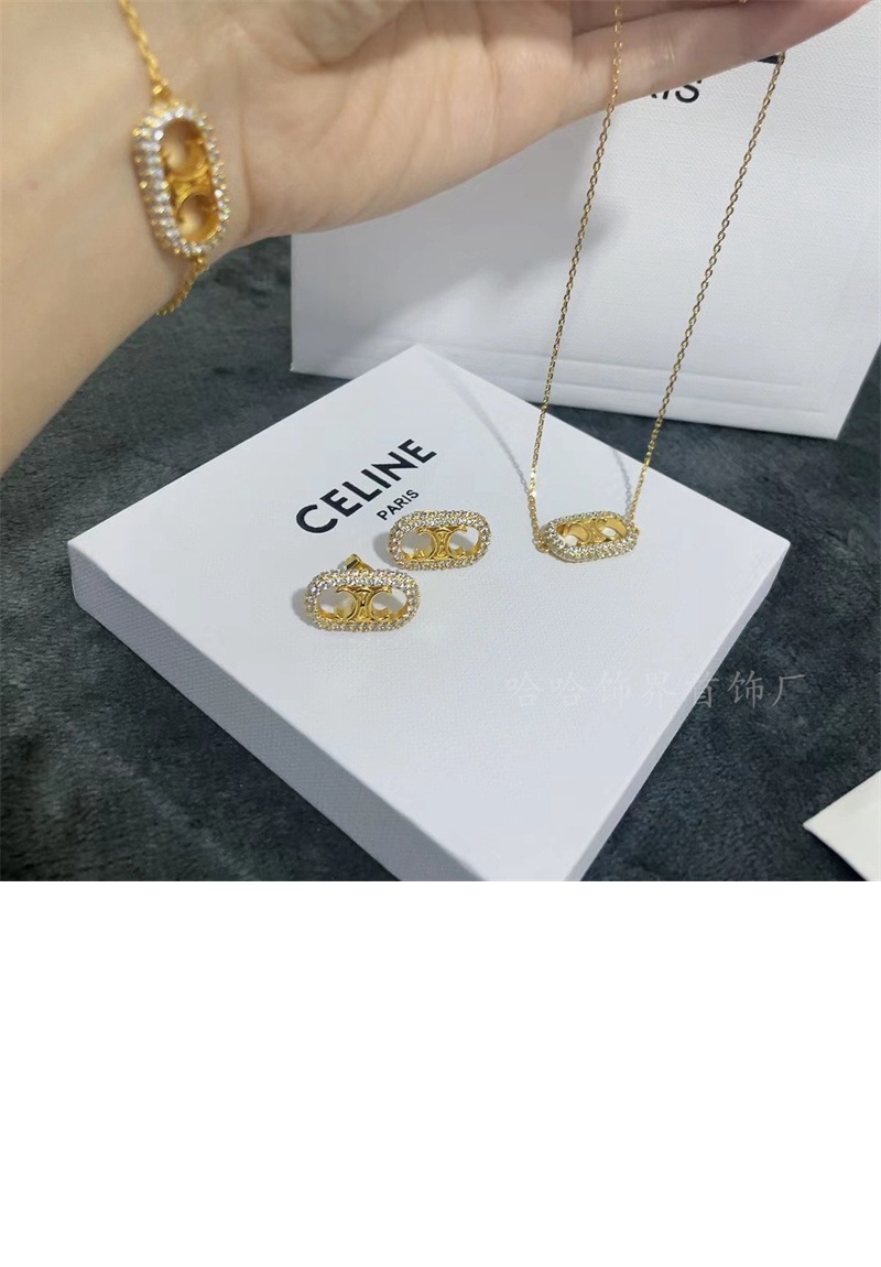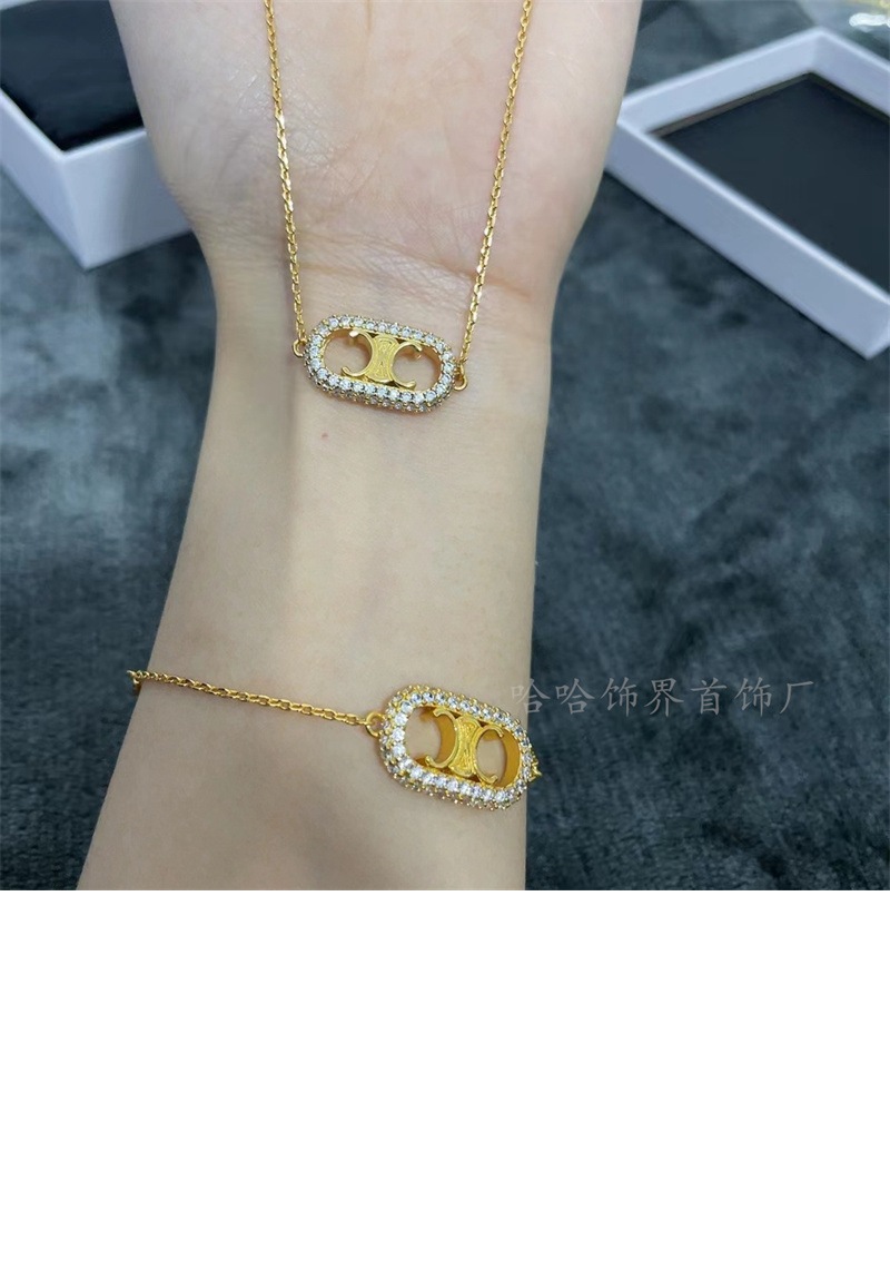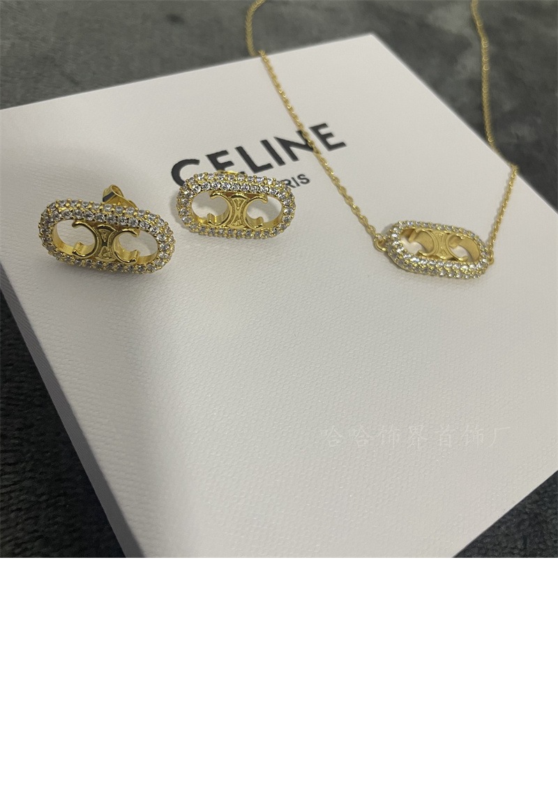 CELI Arc de Triomphe Pig Nose Full Diamond Earrings Necklace Bracelet Set ins European and American Light Luxury High-end Sense