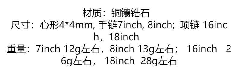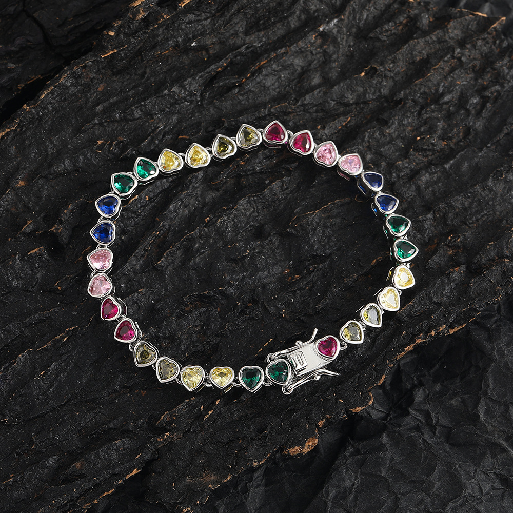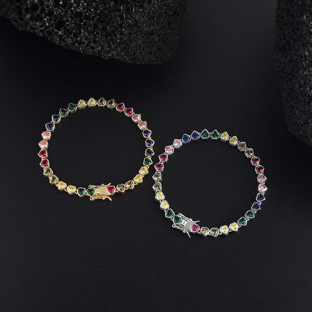 Europe and the United States cross-border explosions color tennis bracelet heart-shaped 4*4mm lovers stacked tennis chain hip-hop love chain