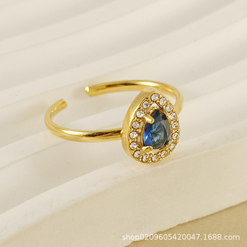European and American Elegant Zircon Open Ring for Women Ins Fashion Stylish Accessible Luxury 18K Stainless Steel Adjustable Water Drop Ring