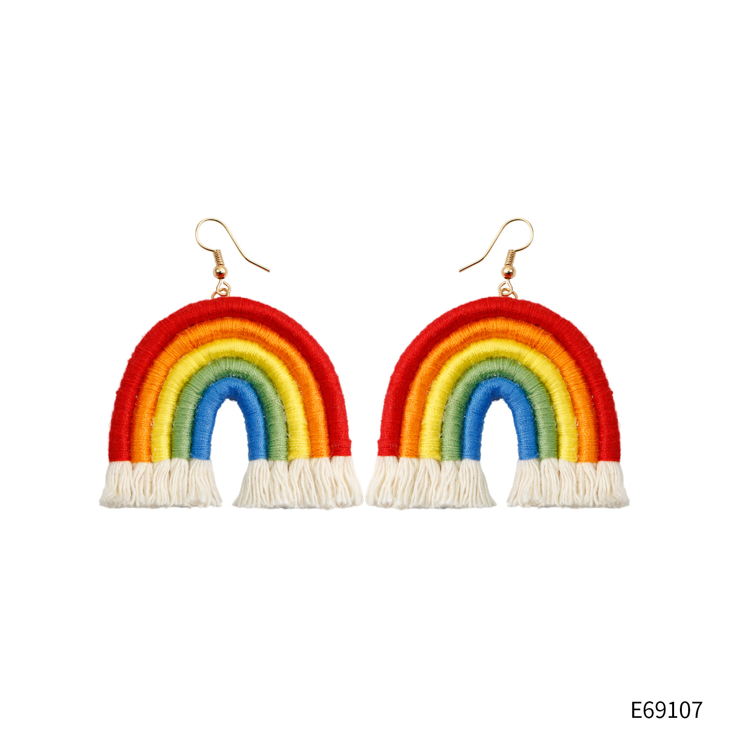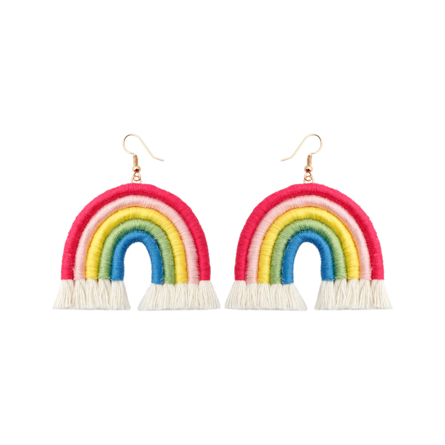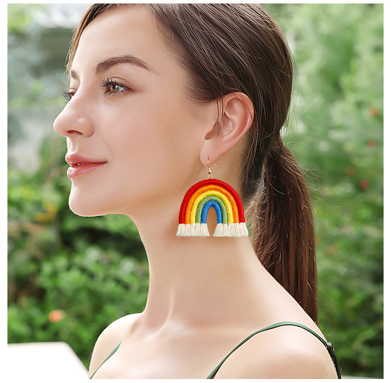 European and American Pastoral Bohemian Rainbow Earrings Handmade Woven Distinctive Exaggerated Niche INS Mori Earrings