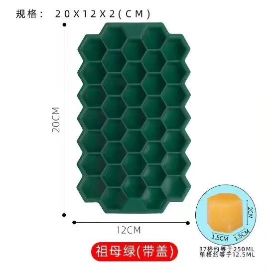 Silicone Ice Tray Ice Cube Mold 37 Grids Honeycomb Silicone Ice Cube Box with Lid Household Ice Making Mold Press Ice Tray