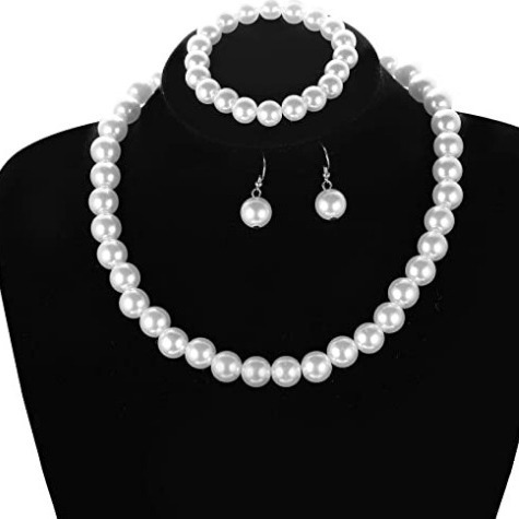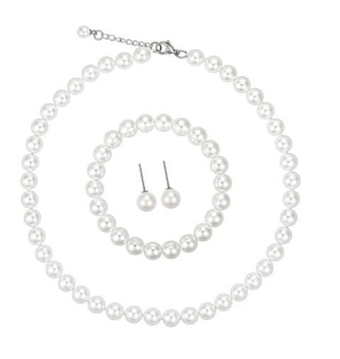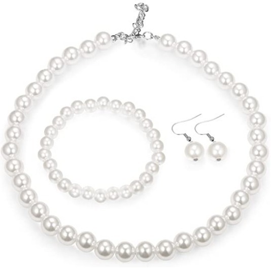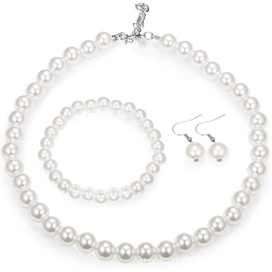Cross-border hot sale simple fashion abs imitation pearl lady necklace earring bracelet three piece suit wholesale