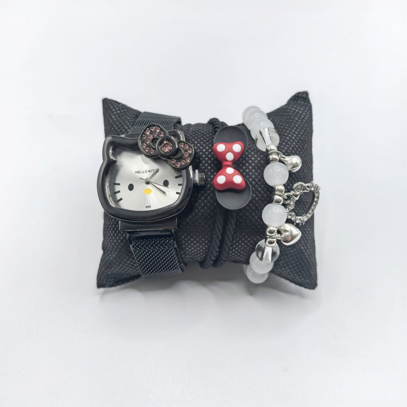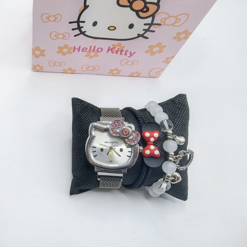 New Children hellokt Cute Point Drill Milan Band Watch Women kitty Cat Magnet Bracelet Quartz Watch