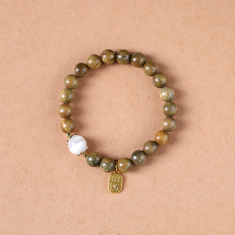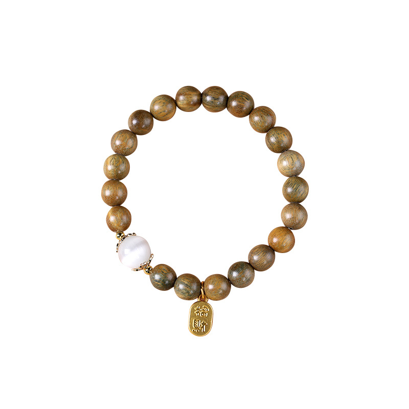 Material: Green sandalwood/white agate/copper plated/Cat's Eye Stone