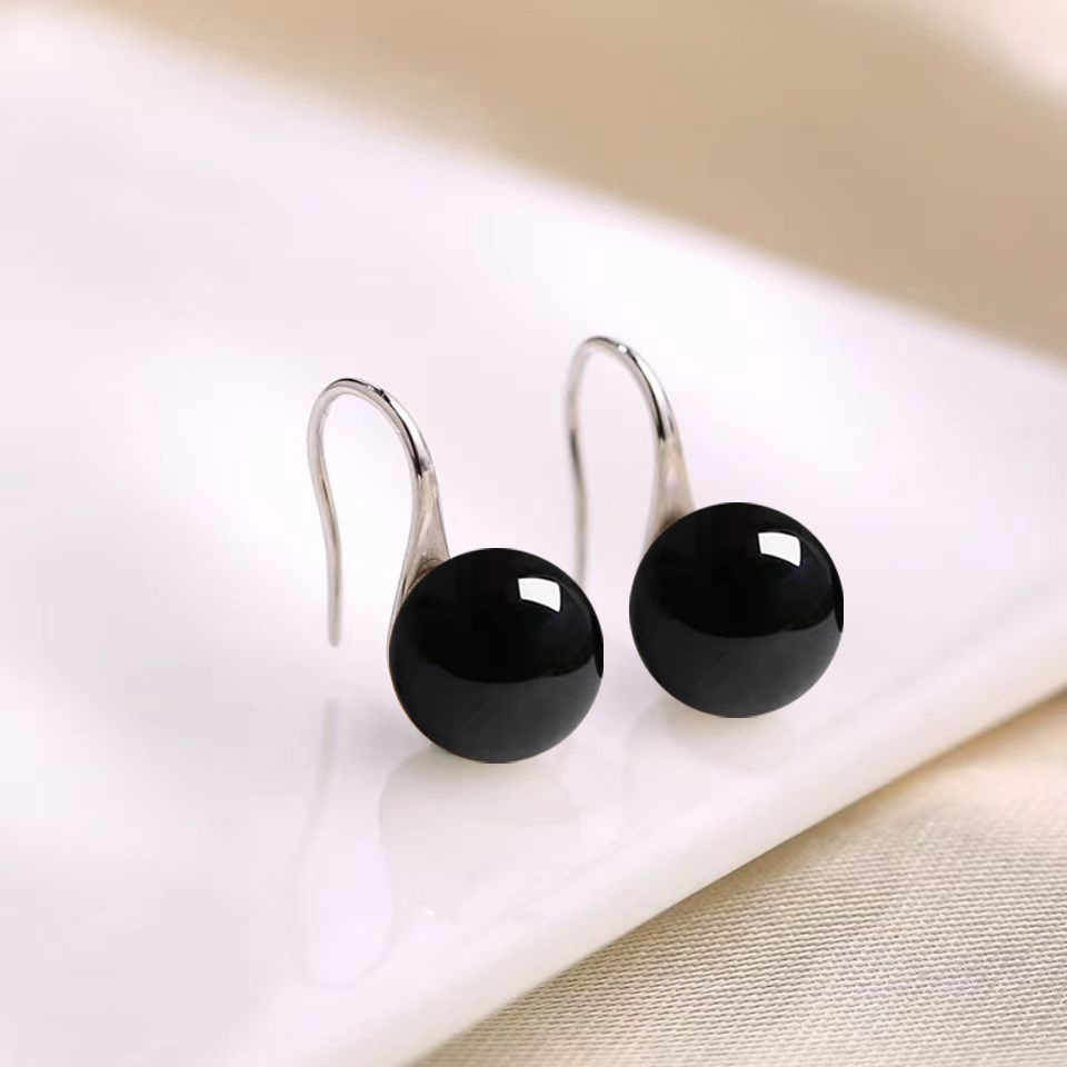 Color: [S925 Silver] C03 [black agate] silver earrings