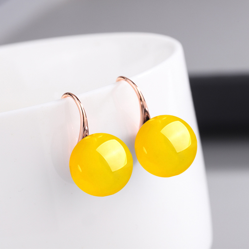 Color: [S925 Silver] C03 [Yellow Agate] silver earrings