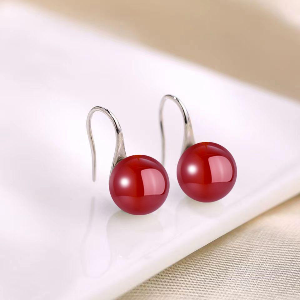 Color: [S925 Silver] C03 [red agate] silver earrings