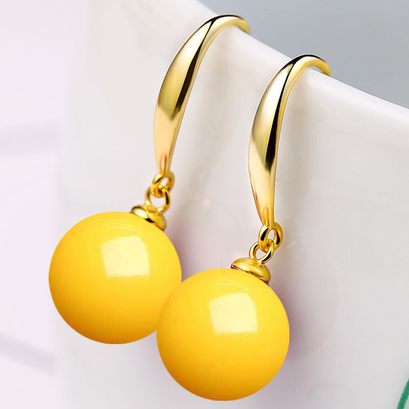 Color: [brass] A09 [wax yellow glass stone] silver earrings