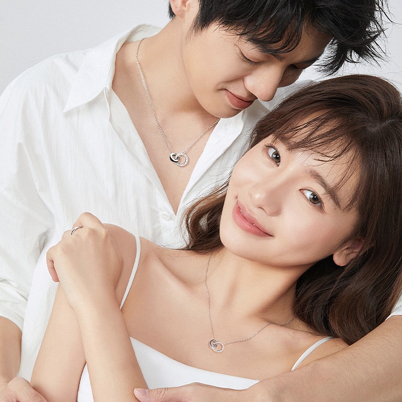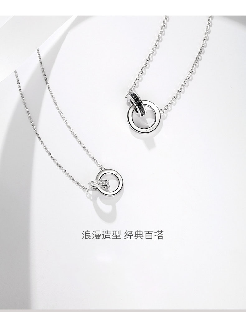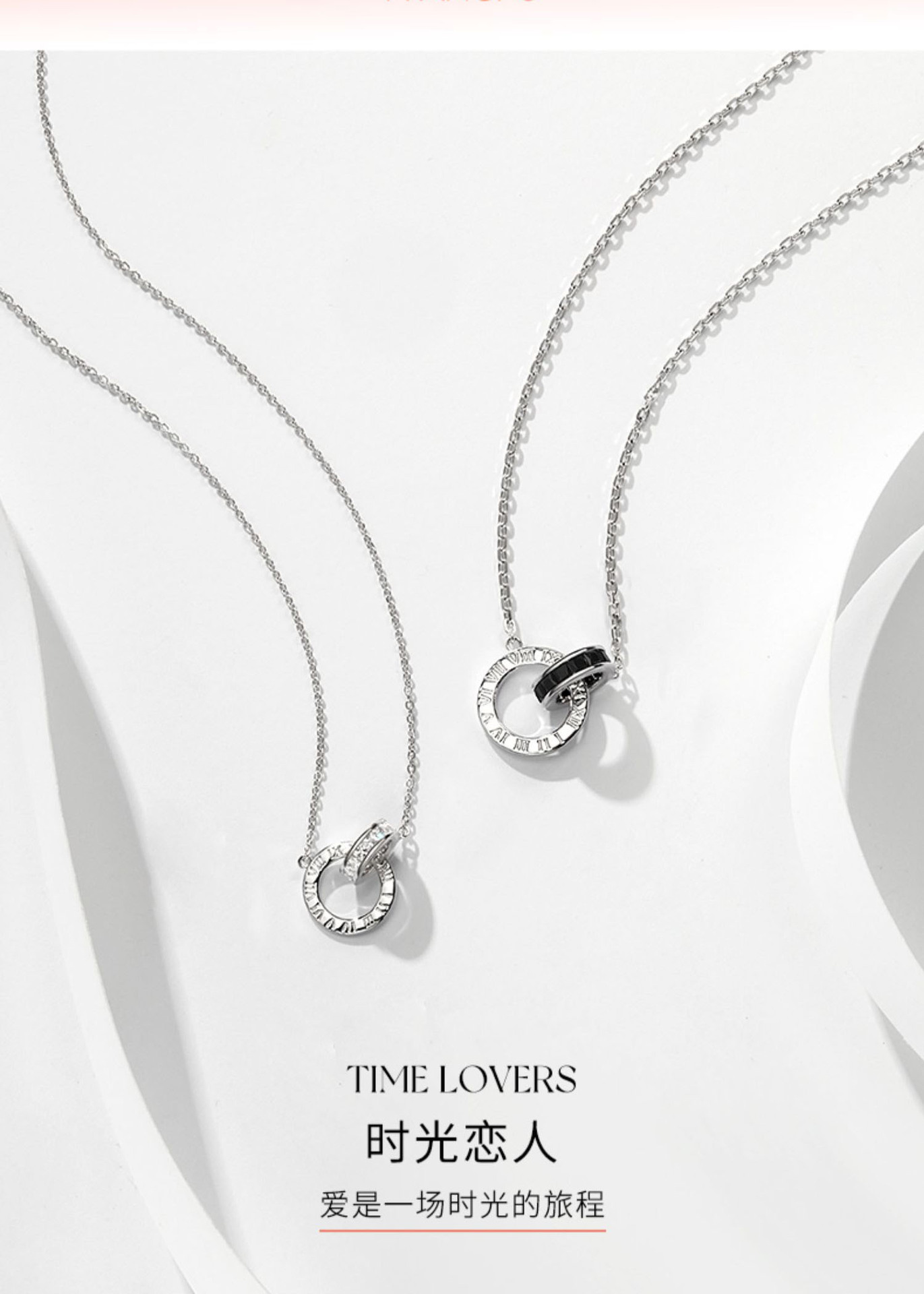 Time Lovers Double-ring Couple Necklace Women 2023 New Fashion Light Luxury ins Style Niche Design Collarbone Chain