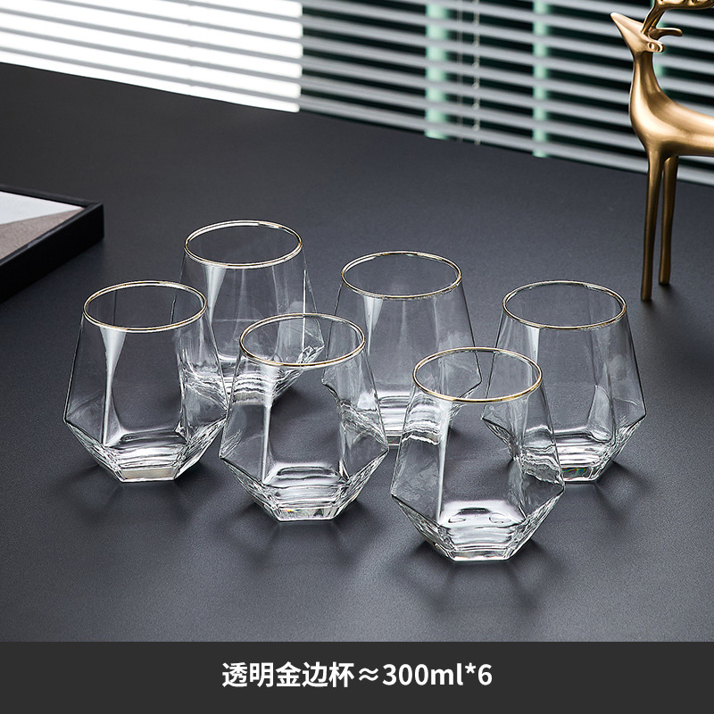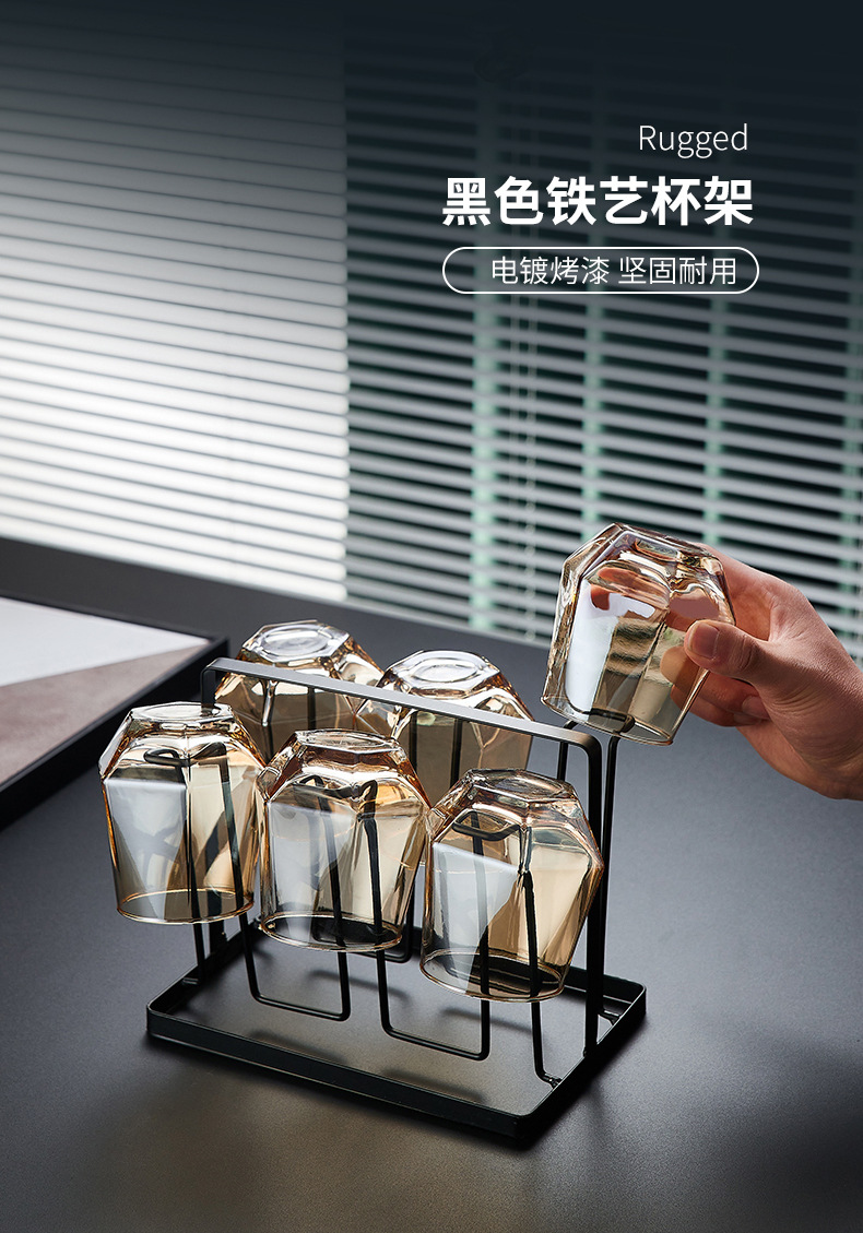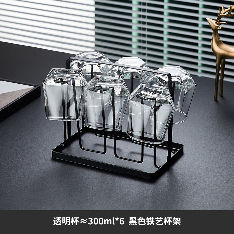 Color: Transparent hexagonal Cup 6 + transparent diamond pot + simple cup holder + dark green tray