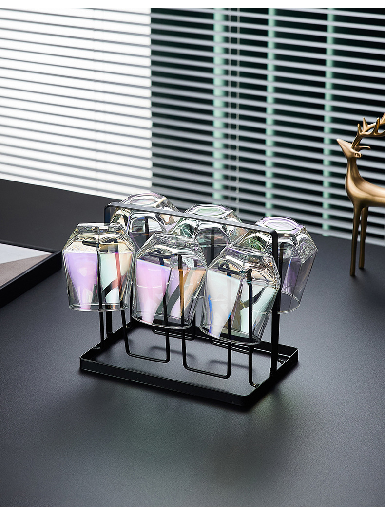 Color: Colorful hexagonal Cup 6 + transparent diamond pot + simple cup holder + dark green tray