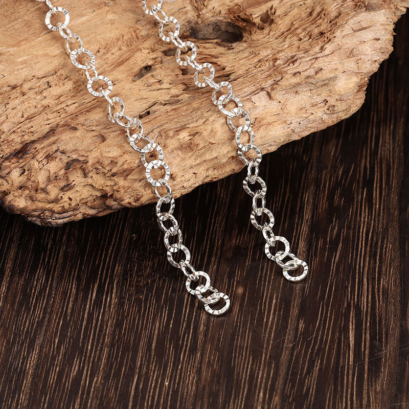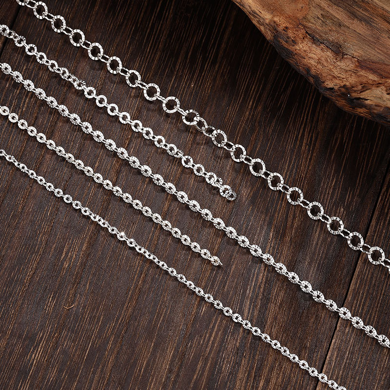 S925 Sterling Silver Sunflower Chain Thin Chain DIY Cross Embossed Chain Women's Bracelet Necklace Silver Semi-Finished Chain