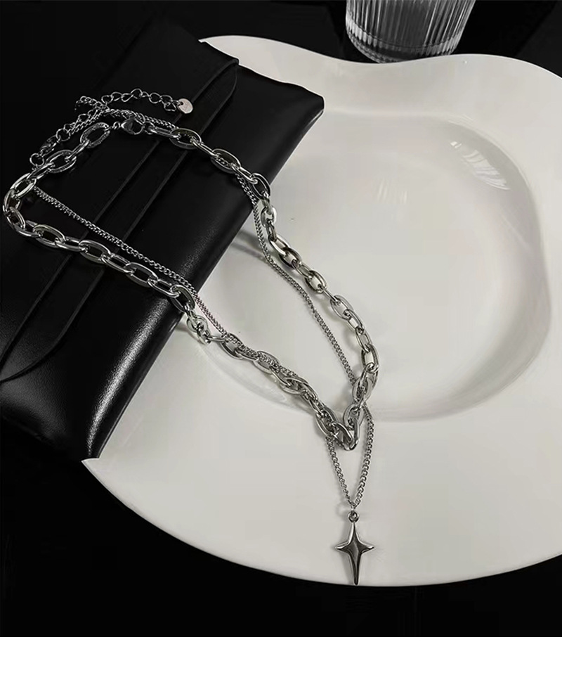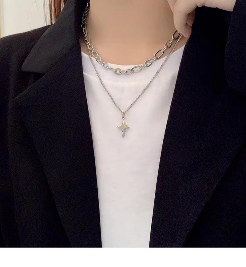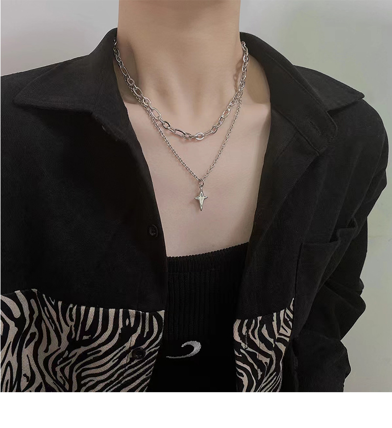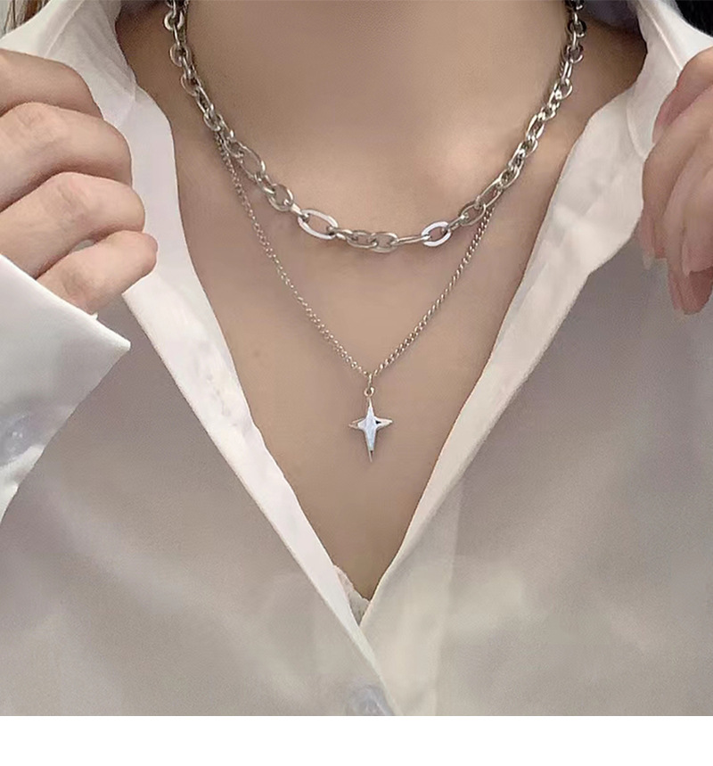 Color: Double-layer titanium steel stacked four-angle star necklace (suit)