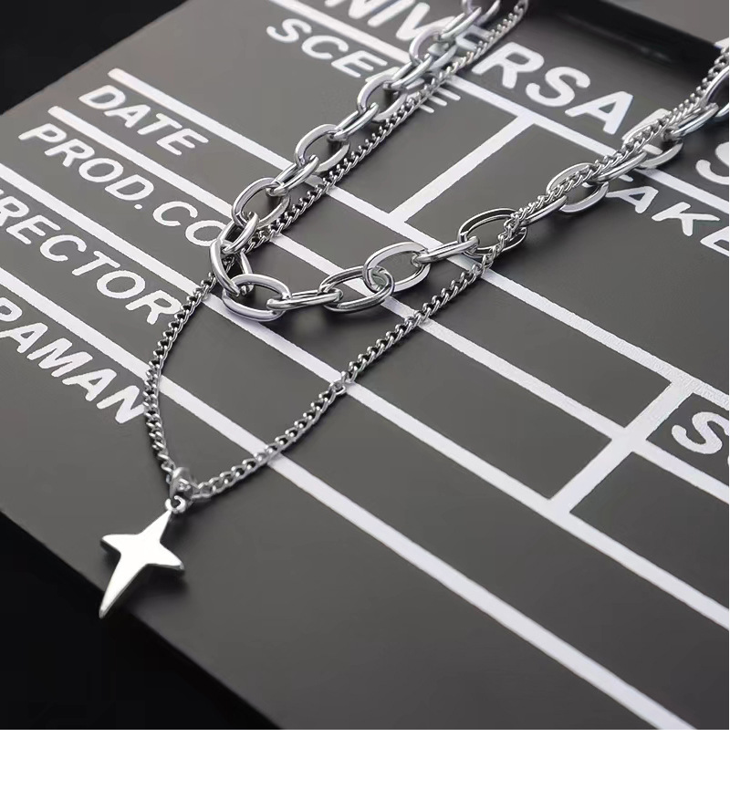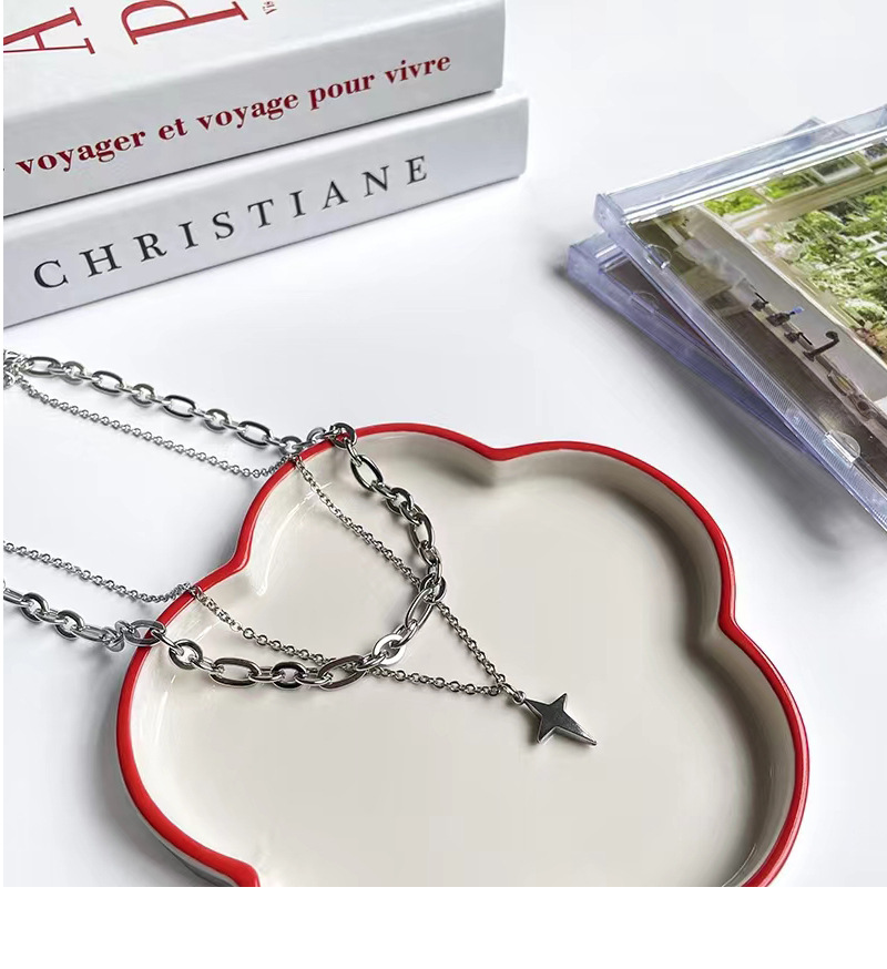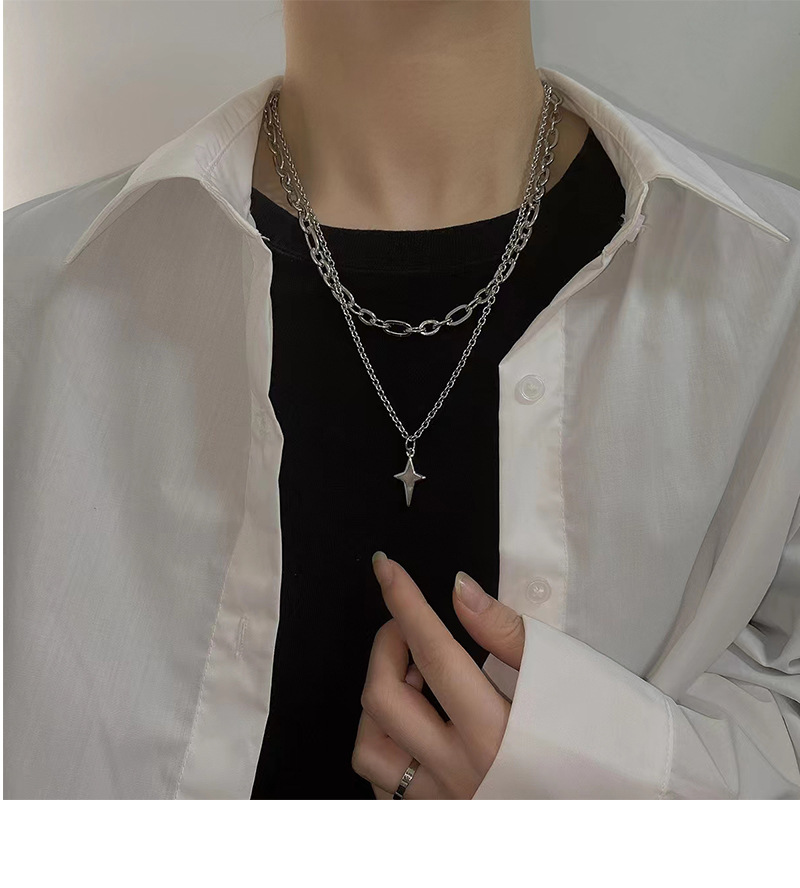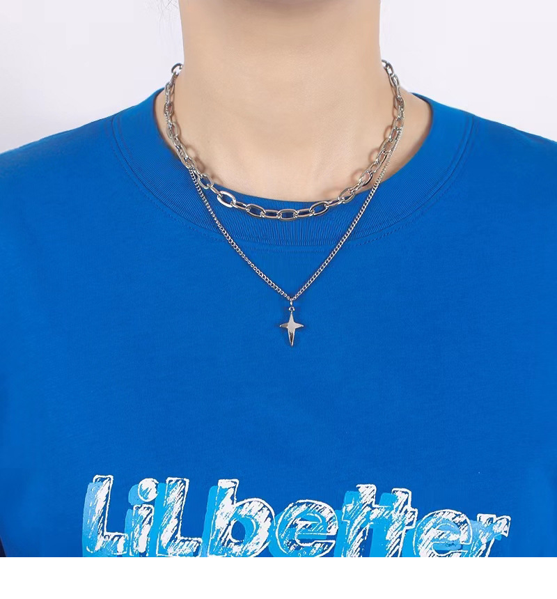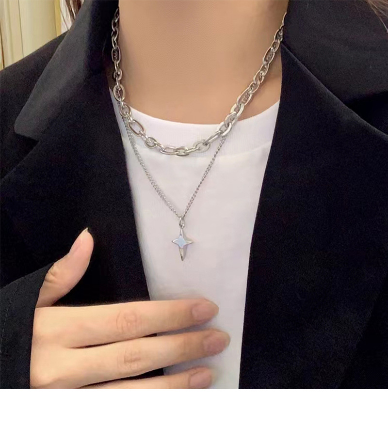Color: Double-layer titanium steel stacked four-angle star necklace (suit)