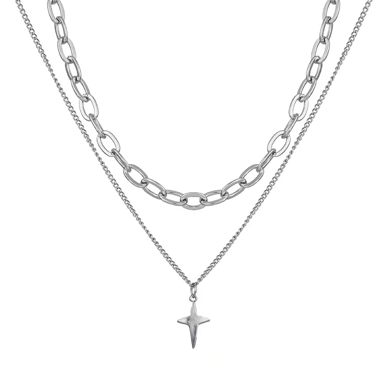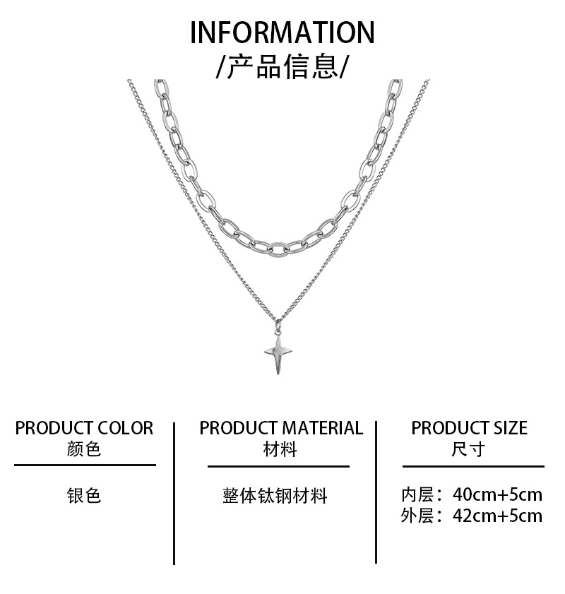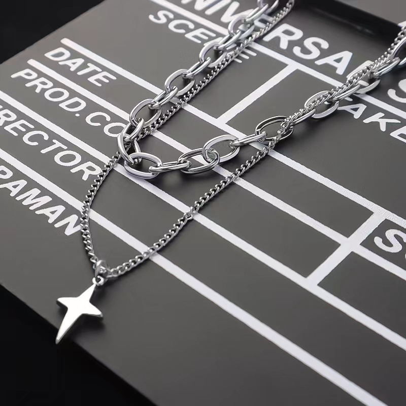 Double-layer titanium steel stacked four-angle star necklace (suit)