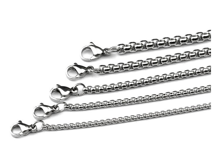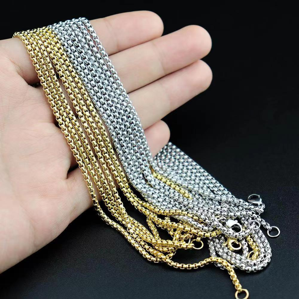 Large Quantity of In-Stock 304 Stainless Steel Square Pearl Chain Titanium Steel Necklace Jewelry for Women, Versatile and High-End Design Accessory Chain