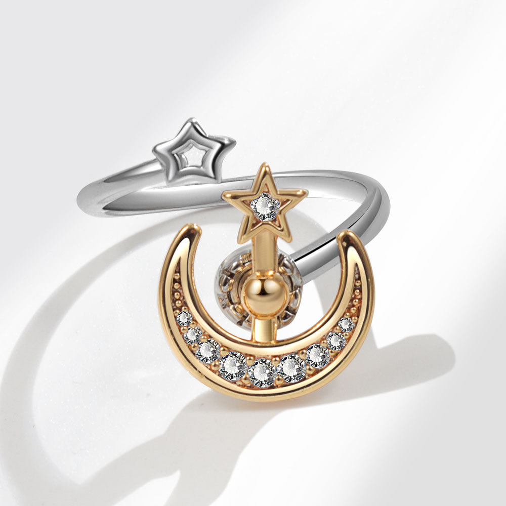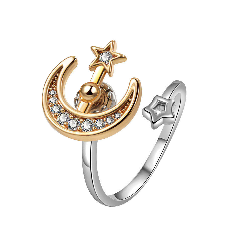Cross-border Hot Star and Moon Ring European and American Fashion Star and Moon Rings Women's Anti-anxiety Decompression Open Ring