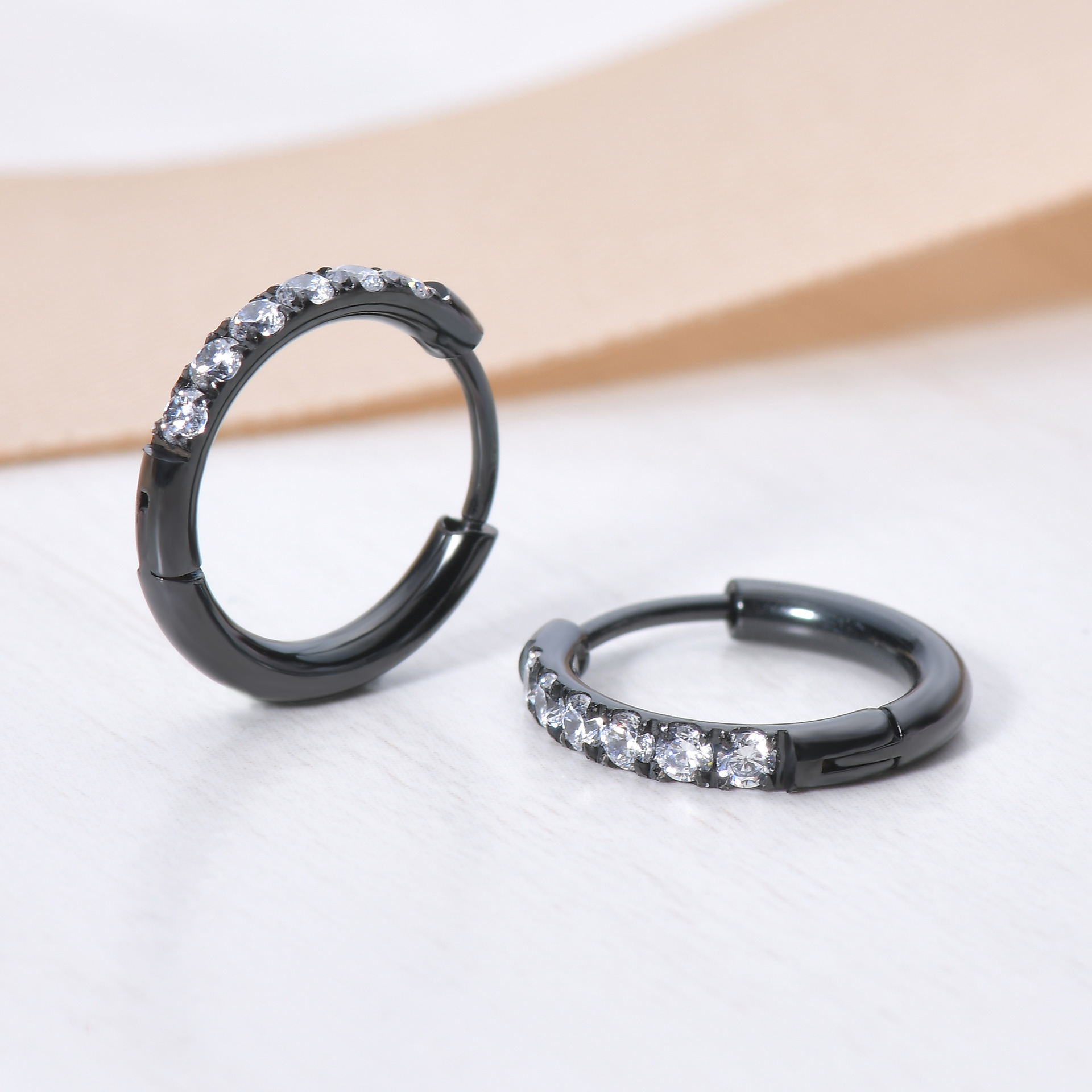 Titanium steel zircon earrings-black
