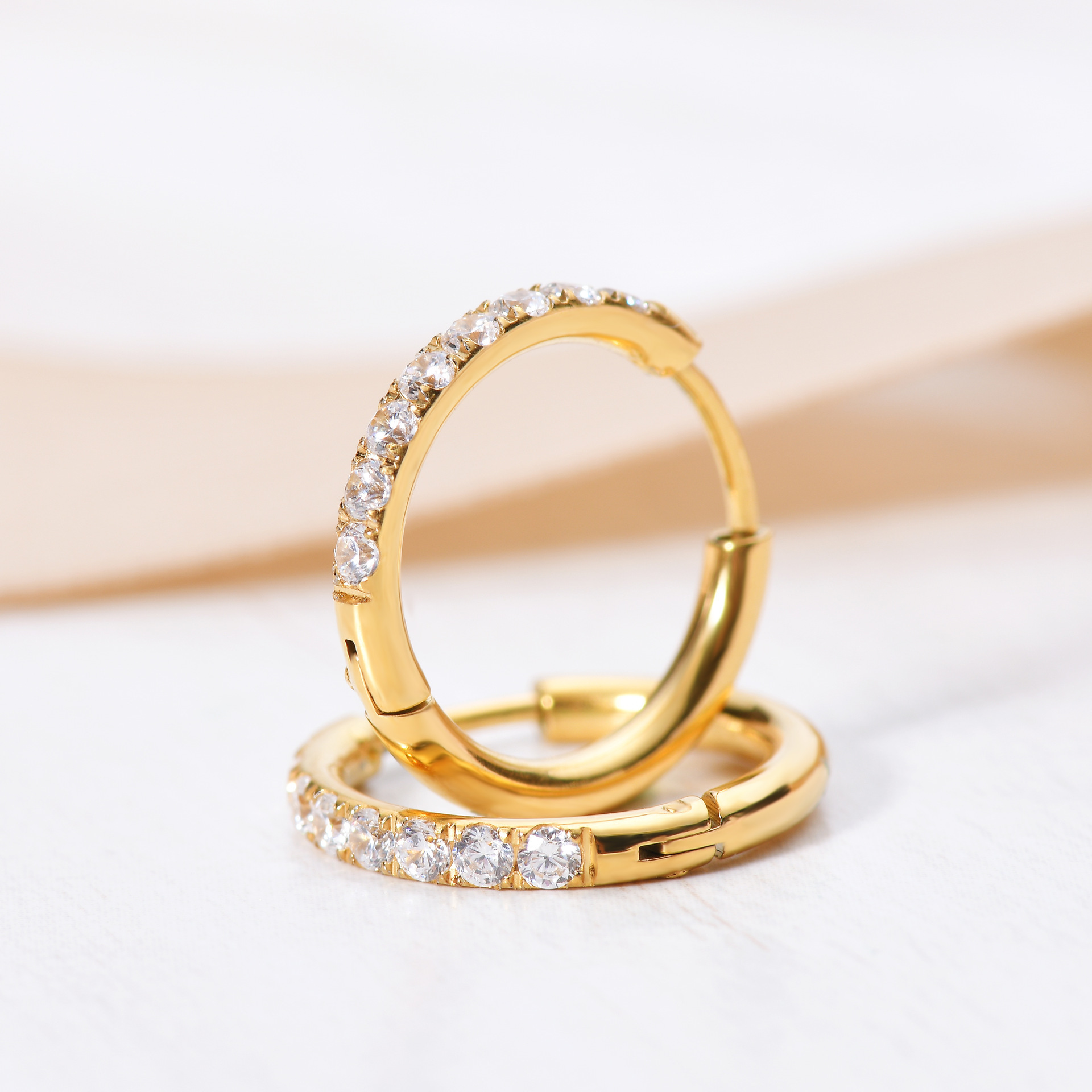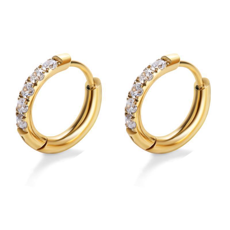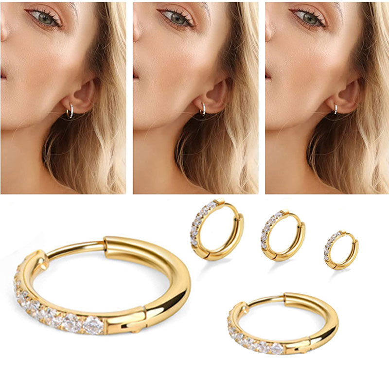 Amazon stainless steel ring-shaped zircon gold earrings Joker round coil micro set ear buckle earrings zircon earrings