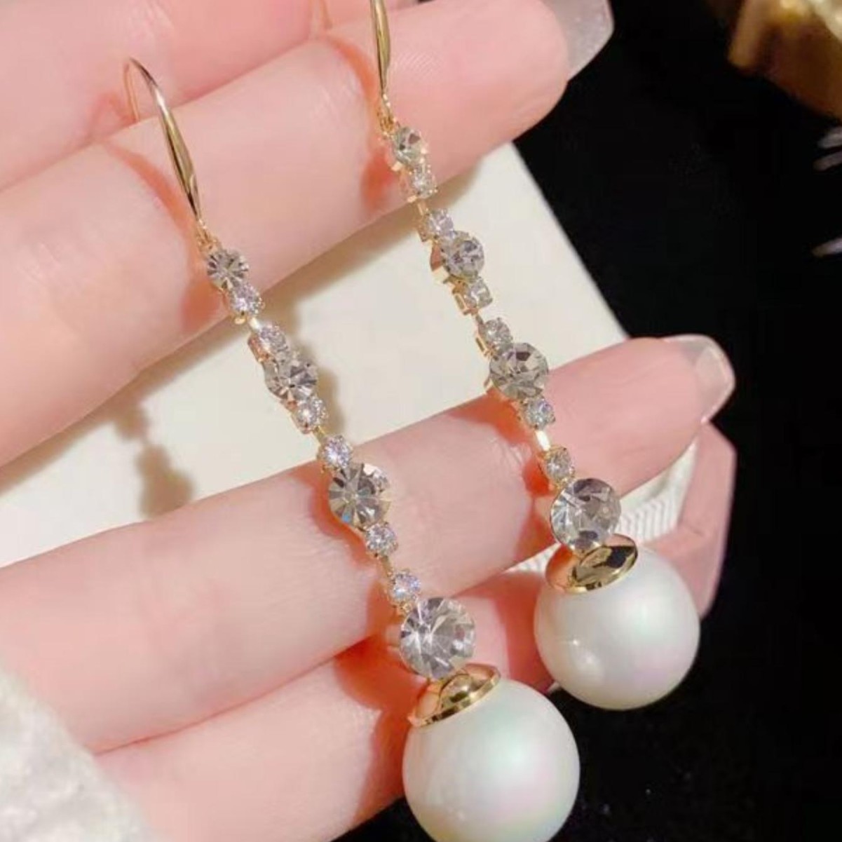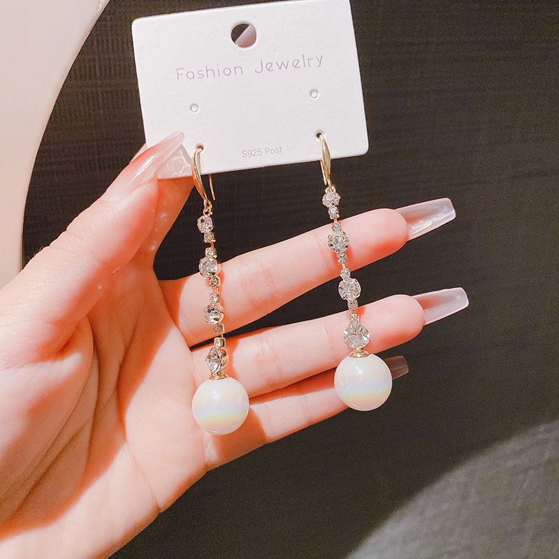 S925 Silver Needle Light Luxury Niche Long Tassel Zircon Earrings Women's ins Trendy All-match Elegant Pearl Earrings Earrings