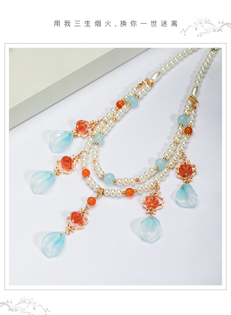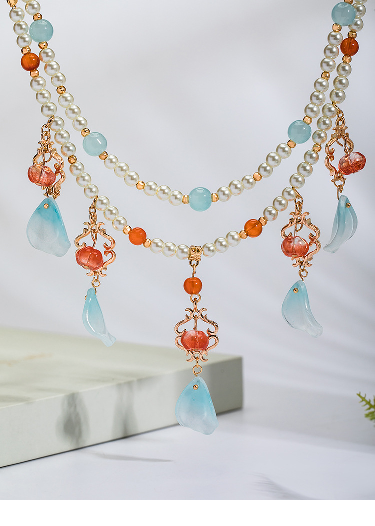 New Chinoiserie Han Dynasty Yingluo Ancient Style Necklace Retro Double Layer Soft Yingluo Ming Dynasty Accessories Han Element Clavicle Chain National Style