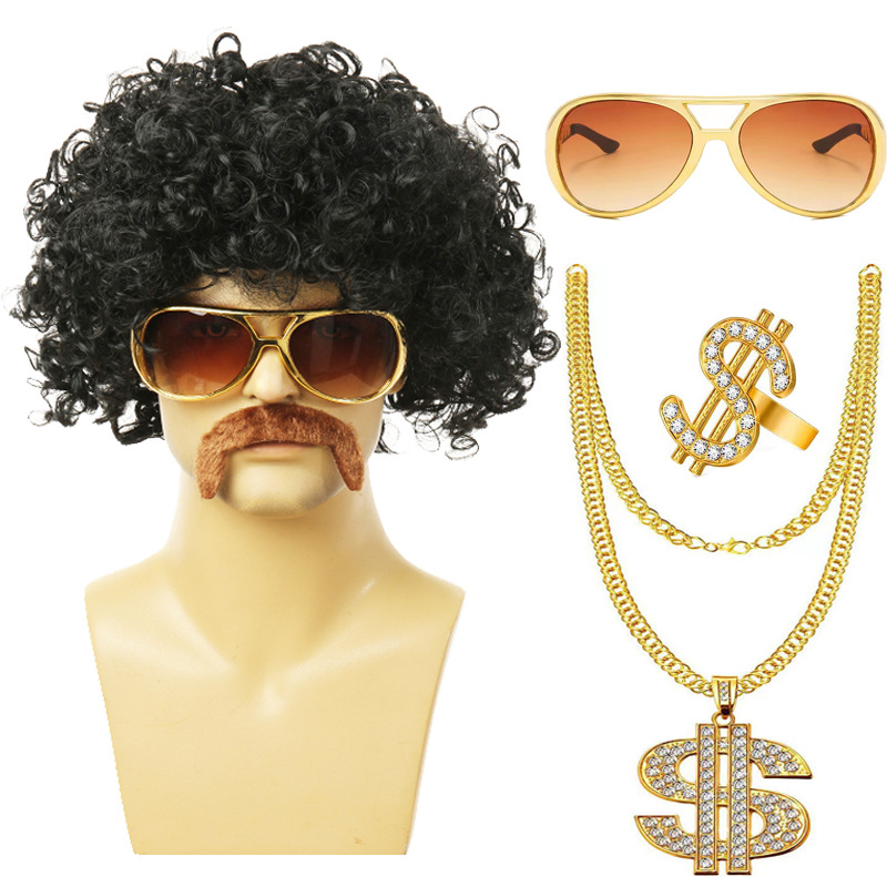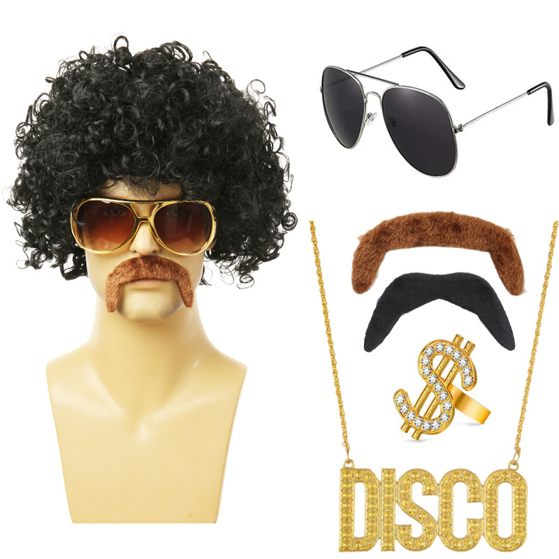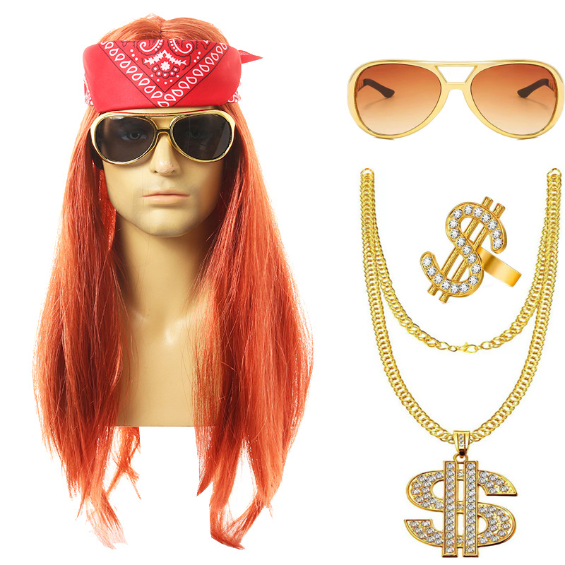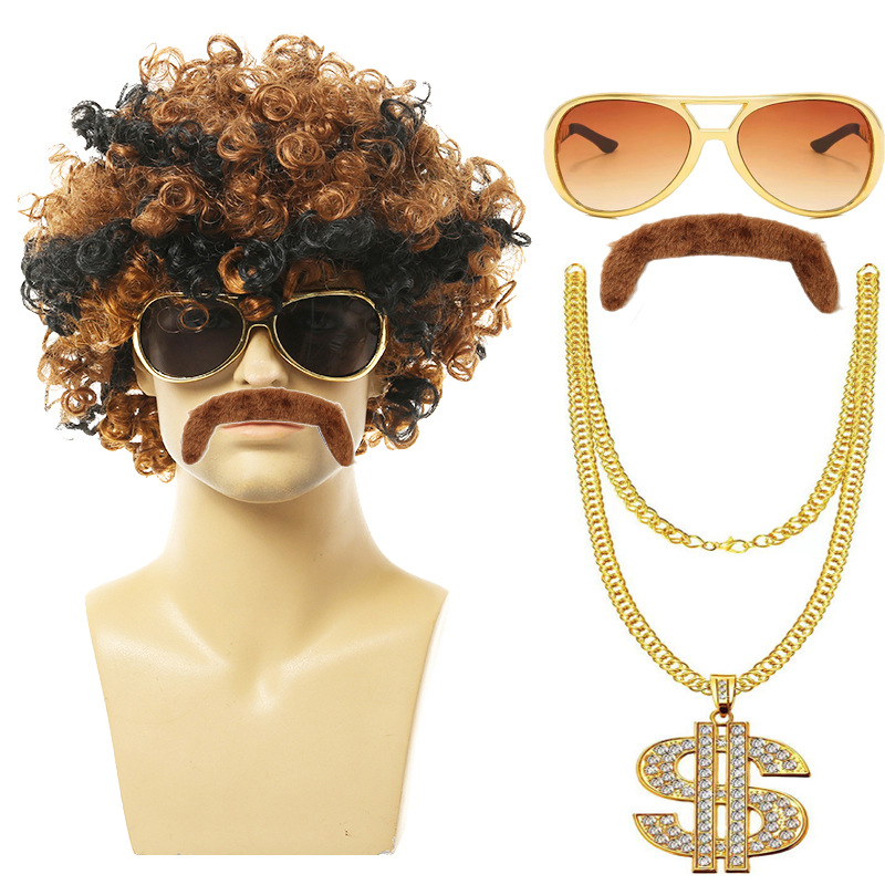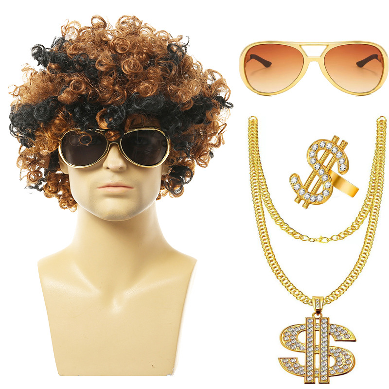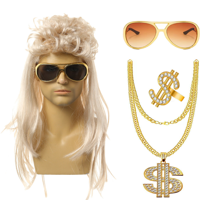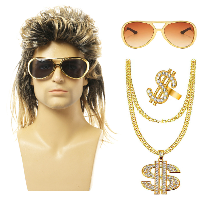 Color: Mix fans + gold glasses ring beard beauty blonde net