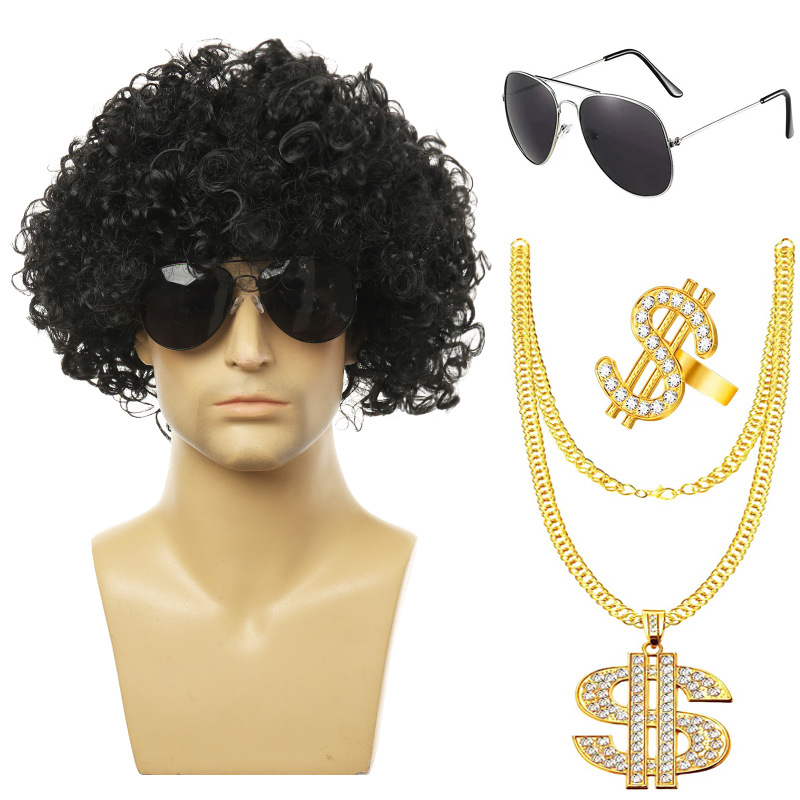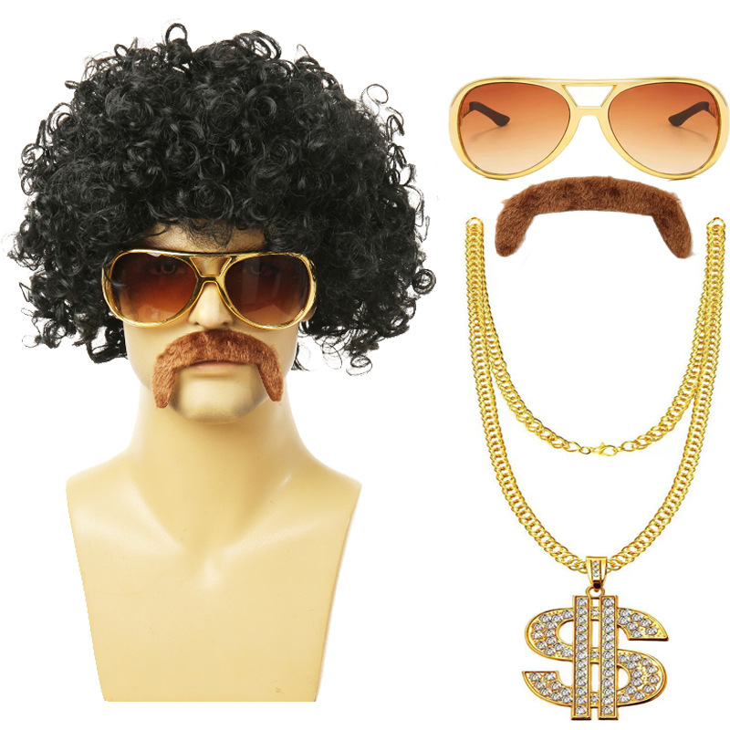 Color: Black fan + elvis presley black beard hair net plain circle necklace